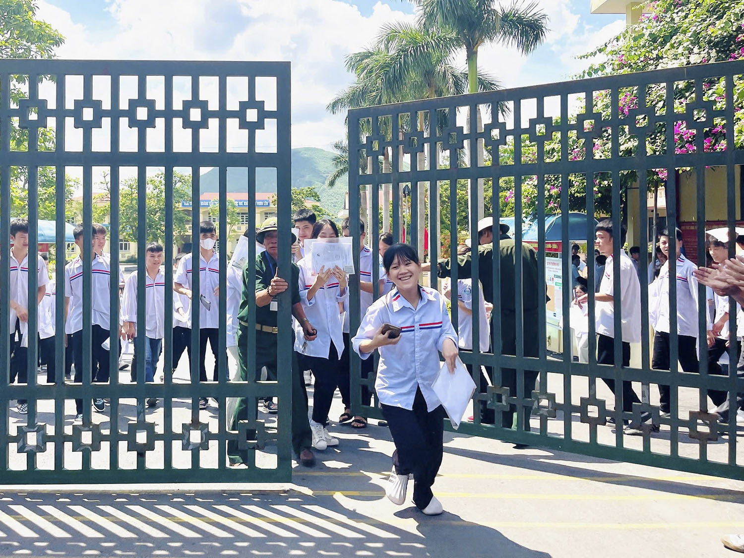 Thí sinh phấn khởi khi hoàn thành môn thi đầu tiên.