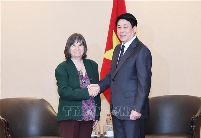 Chủ tịch nước Lương Cường tiếp Chủ tịch Đảng Xã hội Chile Paulina Vodanovic. Ảnh: TTXVN