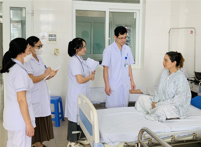 Bác sĩ Bệnh viện Việt Nam - Thụy Điển Uông Bí thăm khám sức khỏe cho bệnh nhân sau khi phẫu thuật.