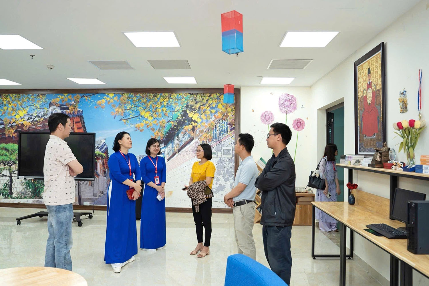 Các bậc cha mẹ học sinh tham quan không gian văn khóa Hàn Quốc - Khoa Ngoại ngữ.