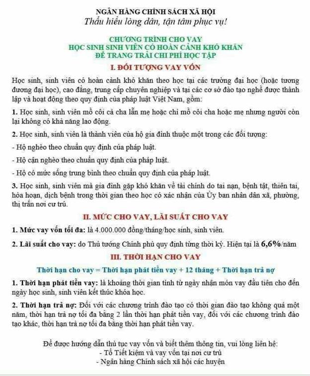 Từ ngày 19/5/2022, học sinh, sinh viên có hoàn cảnh khó khăn chính thức được tăng mức vay vốn từ Ngân hàng Chính sách xã hội. Cụ thể, tăng mức vay tối đa của mỗi học sinh, sinh viên từ 2,5 triệu đồng/tháng lên 04 triệu đồng/tháng đối với: