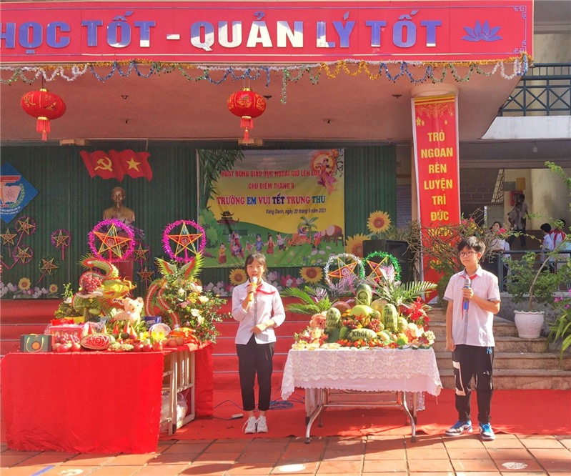 Đặc biệt, hội thi trang trí mâm cỗ trung thu giữa các khối lớp đã thể hiện sự khéo léo, tỉ mỉ, sáng tạo của các em học sinh và giáo viên chủ nhiệm, để lại ấn tượng đáng nhớ về ngày hội trăng rằm.