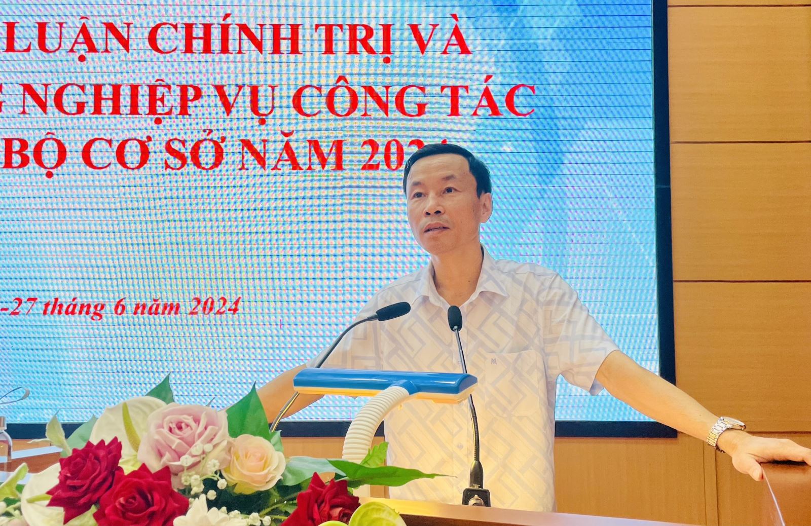 Đồng chí Hoàng Quốc Trung, UVBTV, Trưởng Ban Tuyên giáo Thành uỷ, Giám đốc Trung tâm Chính trị thành phố phát biểu tại lễ khai giảng.