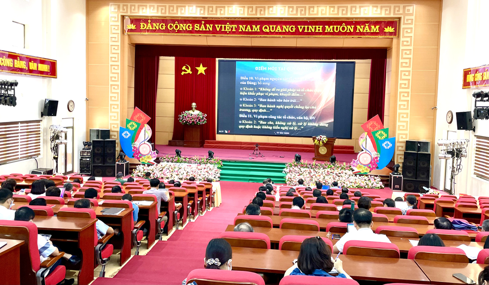 Hội nghị đã được nghe Chủ nhiệm Ủy ban Kiểm tra Tỉnh ủy Nguyễn Đức Thành quán triệt Quy định 69-QĐ/TW ngày 6/7/2022 của Bộ Chính trị về kỷ luật tổ chức Đảng, đảng viên vi phạm. Quy định 69 gồm 4 chương, 58 điều; các điểm mới tập trung ở 3 nội dung: Quy định các hành vi mới trên cơ sở tổng kết thực tiễn và dự báo về các vi phạm trong thời gian tới; điều chỉnh tăng nặng hoặc giảm nhẹ chế tài đối với vi phạm được quy định trước đây; xác định rõ động cơ, mục đích, hậu quả của vi phạm làm căn cứ áp dụng chế tài phù hợp, đồng bộ với quy định mới của Đảng và pháp luật để tổ chức Đảng, đảng viên không muốn vi phạm, không dám vi phạm kỷ luật Đảng.