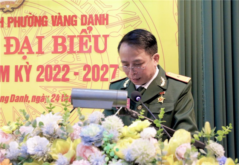Sáng 24/3, Hội CCB phường Vàng Danh tổ chức đại hội lần thứ IX, nhiệm kỳ 2022 - 2027. Tới dự có Đại tá Trần Xuân Đông - Chủ tịch Hội CCB thành phố.