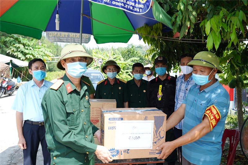 Lãnh đạo Hội CCB thành phố tặng quà cho lực lượng tham gia trực chốt phụ kiểm dịch trên địa bàn phường Phương Nam.