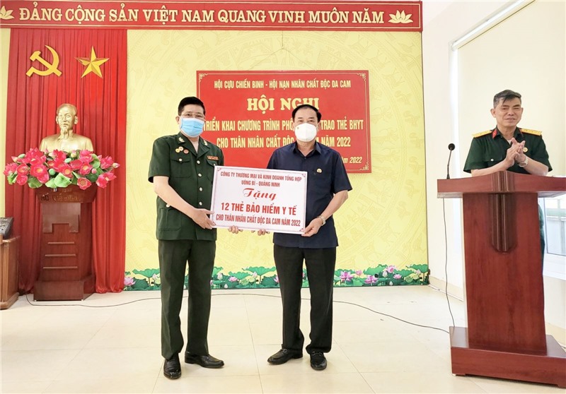 Công ty Thương mại và Kinh doanh Tổng hợp Uông Bí – Quảng Ninh trao tặng Hội Nạn nhân chất độc da cam/dioxin thành phố 12 thẻ BHYT tự nguyện, tổng giá trị gần 10 triệu đồng.