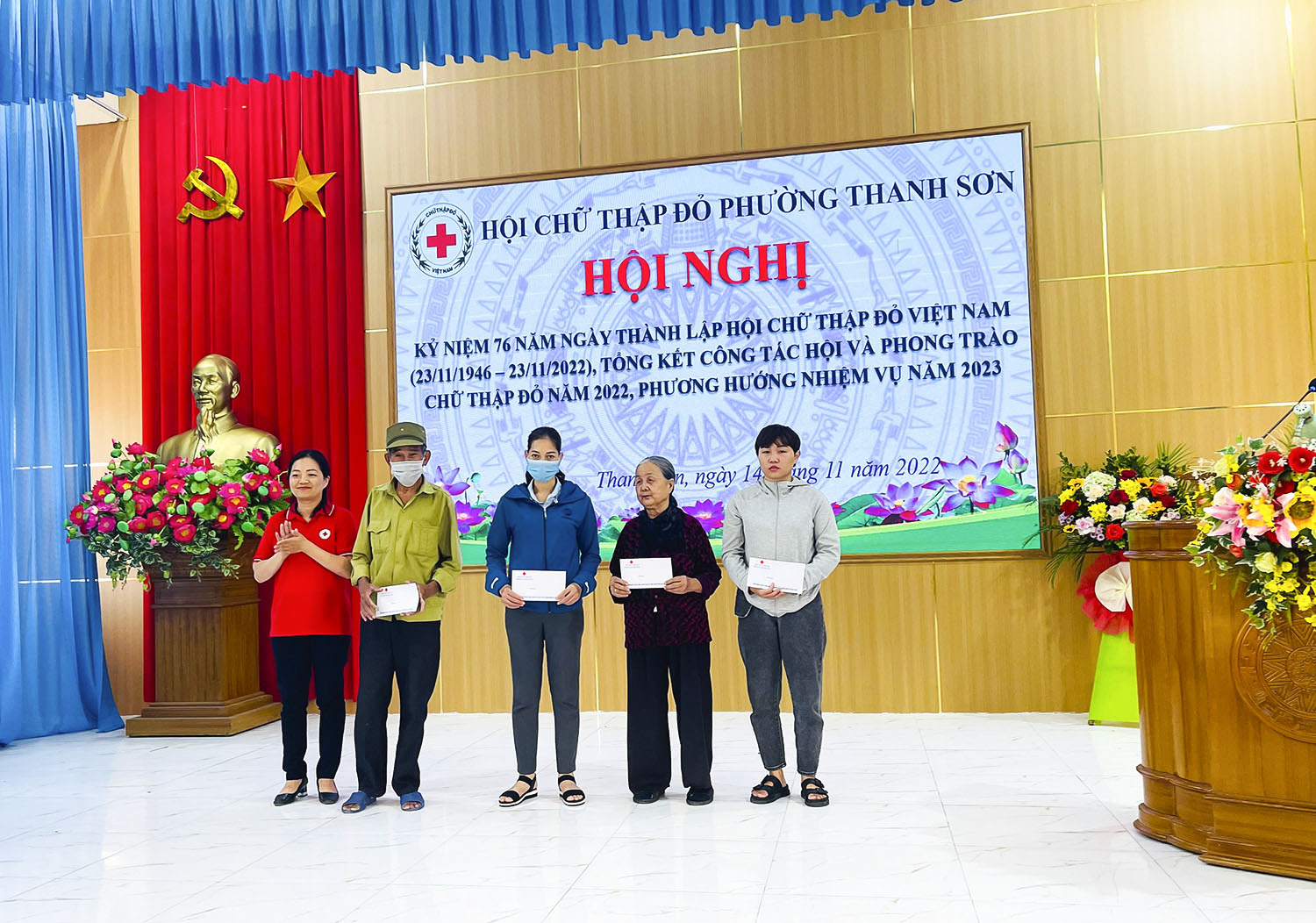 Hội Chữ thập đỏ phường Thanh Sơn: kỷ niệm 76 năm ngày thành lập Hội Chữ thập đỏ Việt Nam, tổng kết công tác hội và phong trào chữ thập đỏ năm 2022
