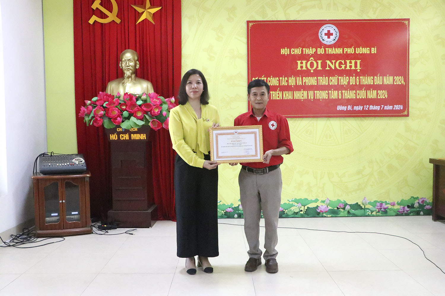 Chiều 12/7, Hội Chữ thập đỏ thành phố đã tổ chức sơ kết công tác 6 tháng đầu năm, triển khai nhiệm vụ 6 tháng cuối năm. Về dự có đồng chí Đào Thị Hải Yến - Phó chủ tịch Hội CTĐ tỉnh.