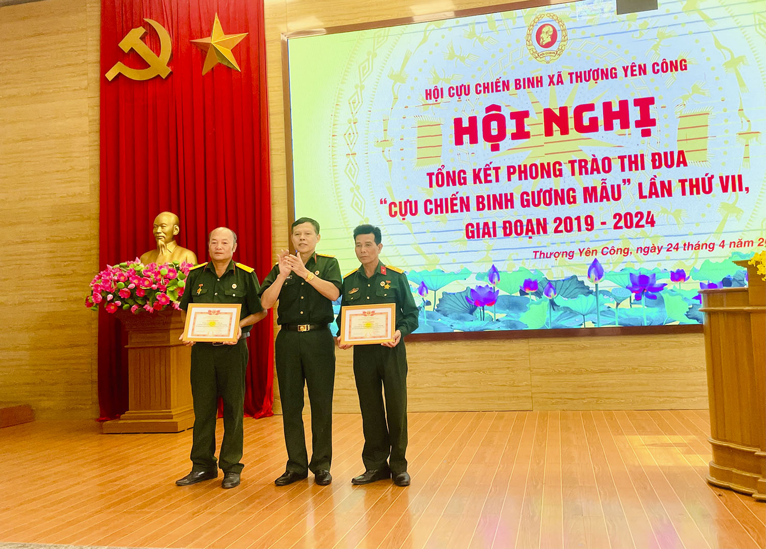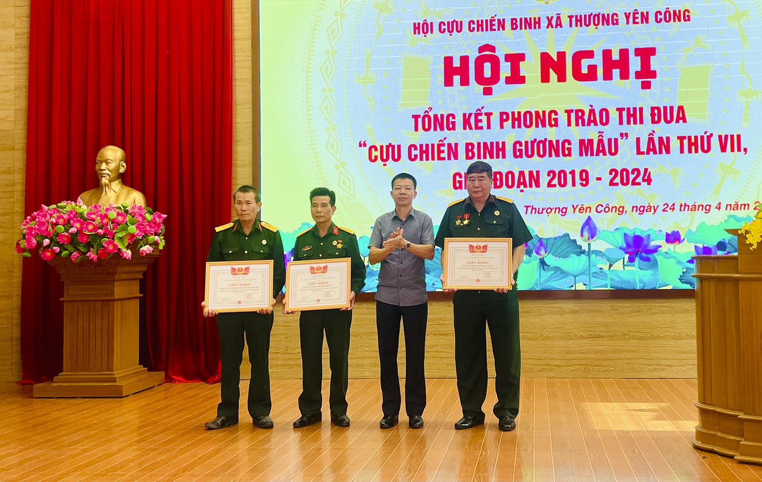 Tại hội nghị, Hội CCB xã Thượng Yên Công đã nhất trí thông qua danh sách đại biểu đi dự Hội nghị tổng kết Phong trào thi đua “Cựu chiến binh gương mẫu” thành phố, giai đoạn 2019 - 2024. Nhân dịp này, các tập thể, cá nhân có thành tích xuất sắc trong thực hiện phong trào “Cựu chiến binh gương mẫu” trên địa bàn xã đã được biểu dương, khen thưởng.