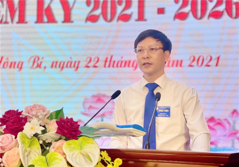 Đồng chí Đỗ Trường Sơn, Uỷ viên BTV Thành ủy, Phó Chủ tịch HĐND thành phố phát biểu tại Đại hội.