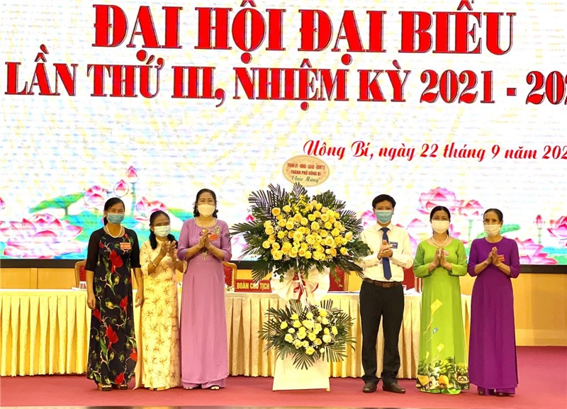 Lãnh đạo thành phố tặng hoa chúc mừng Đại hội.