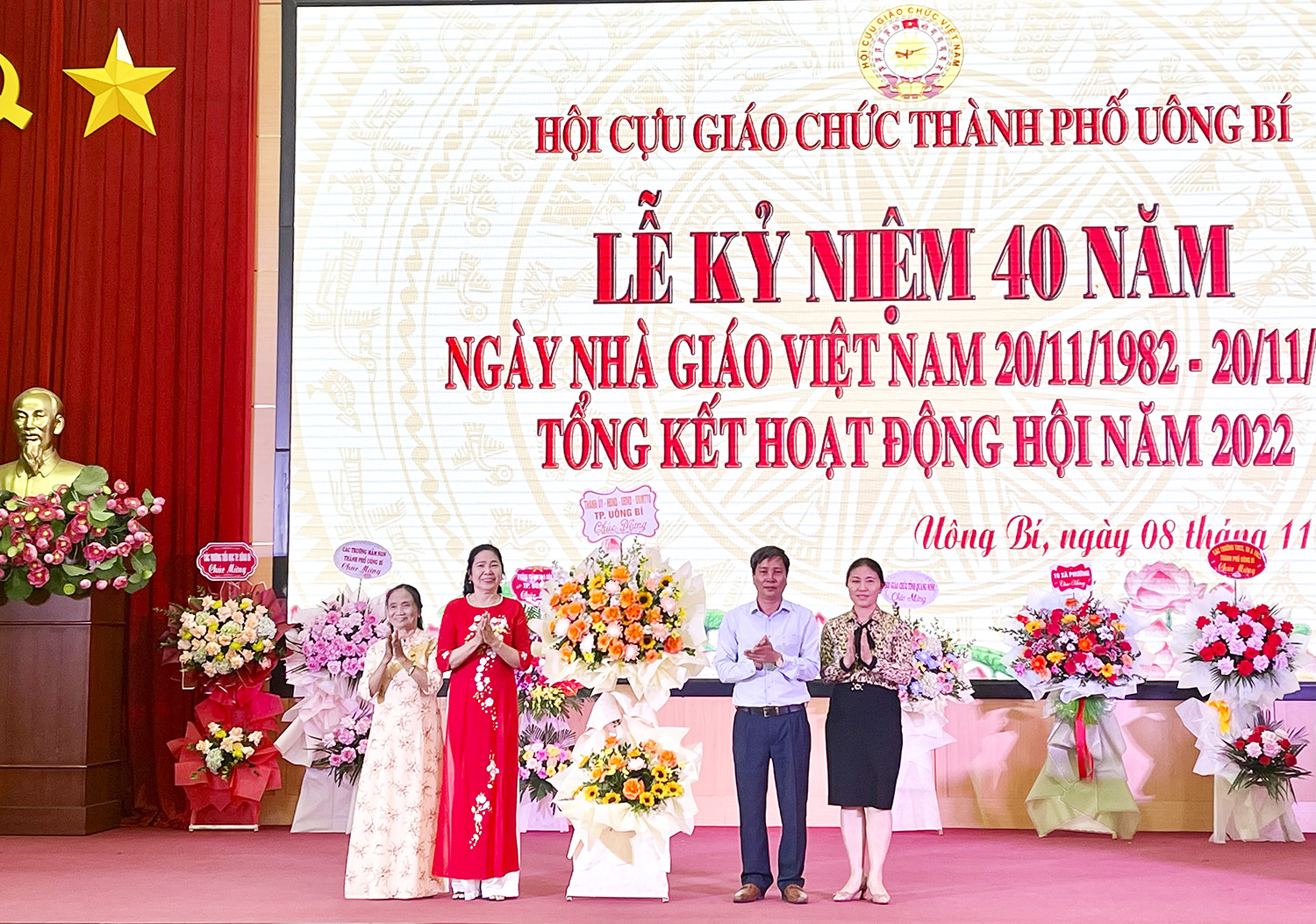 Ngày 8/11, Hội Cựu giáo chức thành phố Uông Bí long trọng tổ chức kỷ niệm 40 năm Ngày Nhà giáo Việt Nam 20/11(1982-2022), tổng kết hoạt động công tác hội năm 2022. Dự, chúc mừng có các đồng chí: Trần Trọng Lan, Chủ tịch Hội Cựu giáo chức tỉnh; Nguyễn Văn Thành, Uỷ viên BTV Thành ủy, Phó Chủ tịch Thường trực UBND thành phố.
