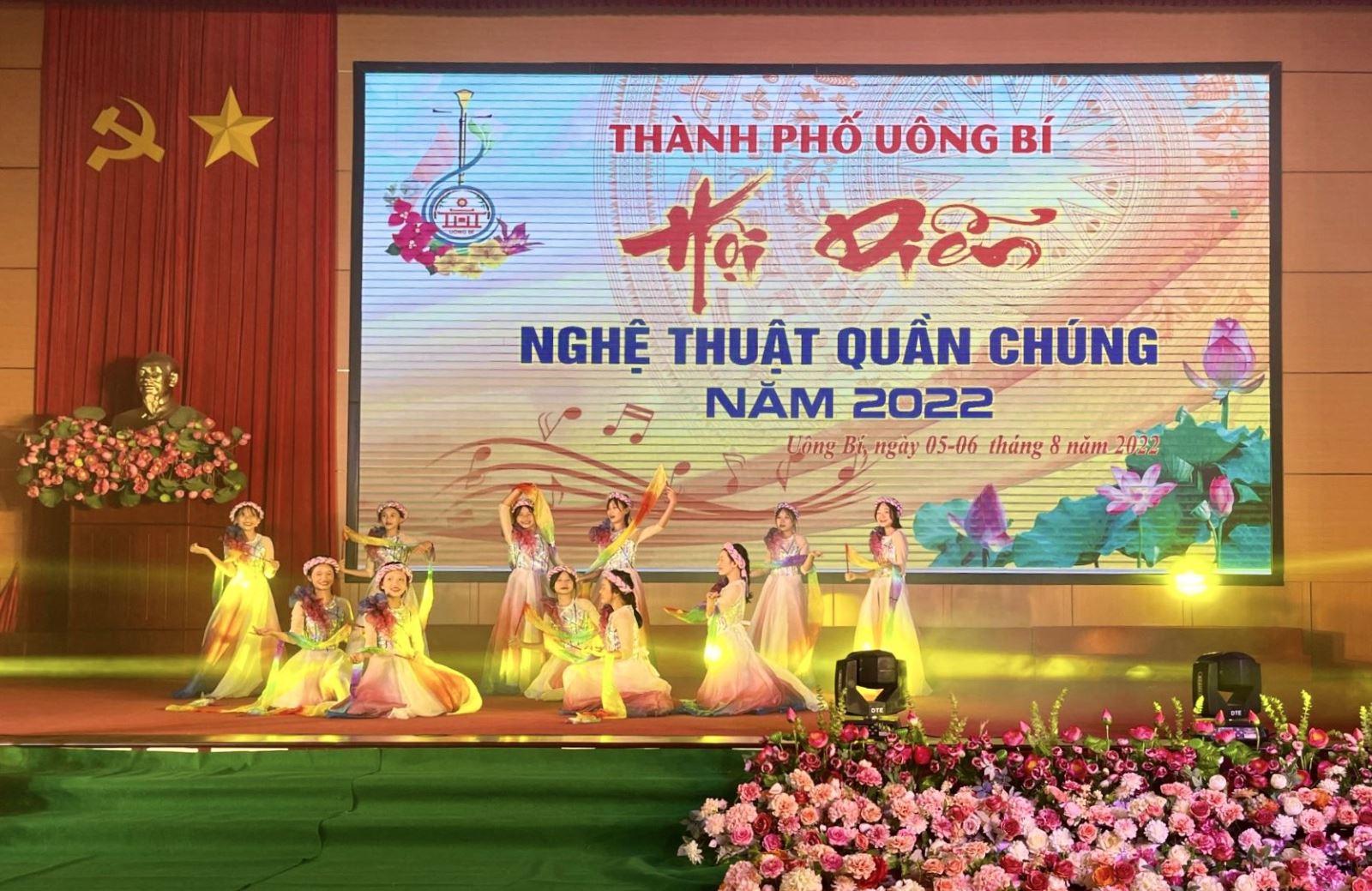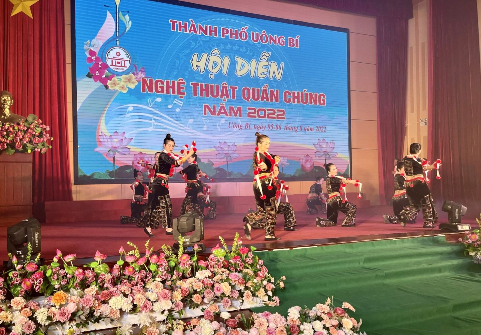 Ngày 6/8, Hội diễn nghệ thuật quần chúng TP Uông Bí năm 2022 bước sang ngày thứ 2. Trong buổi sáng là các tiết mục tham gia đến từ 8 xã, phường trên địa bàn Thành phố, bao gồm: Trưng Vương, Phương Đông, Yên Thanh, Nam Khê, Phương Nam, Thượng Yên Công, Quang Trung và Bắc Sơn.