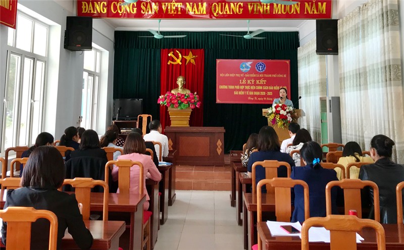 Hoạt động ký quy chế phối hợp giữ Hội LHPN, Bảo hiểm xã hội thành phố nhằm nâng cao chất lượng, hiệu quả thực hiện chế độ, chính sách BHXH tự nguyện, BHYT hộ gia đình, góp phần tăng nhanh diện bao phủ đối tượng tham gia BHXH, BHYT trên địa bàn đến năm 2025.