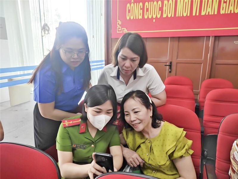 Phụ nữ công an thành phố trực tiếp hướng dẫn Nhân dân cài đặt và kích hoạt tài khoản định danh điện tử mức độ 2.
