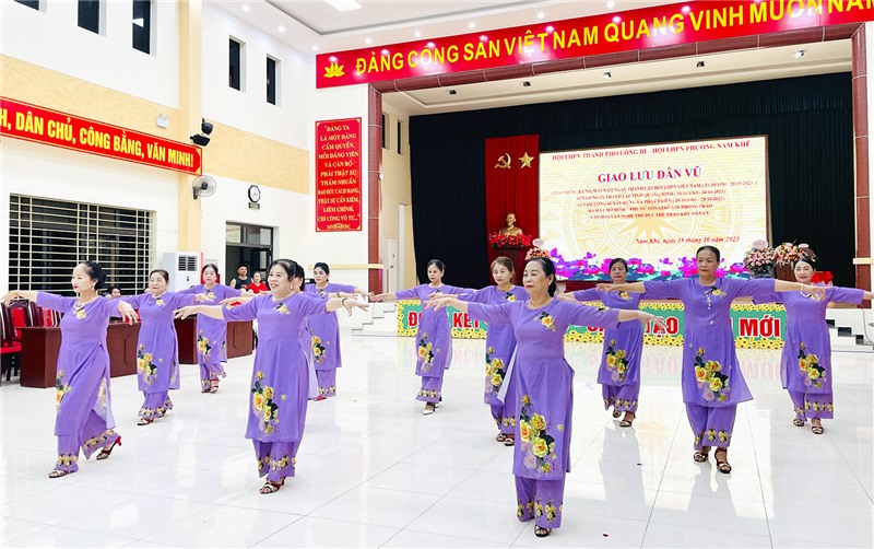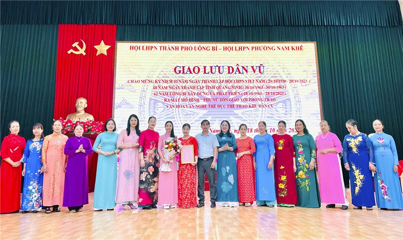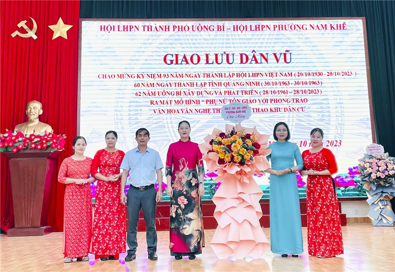 Tối 18/10, Hội LHPN phường Nam Khê tổ chức chương trình Giao lưu dân vũ chào mừng kỷ niệm 93 năm Ngày thành lập Hội LHPN Việt Nam 20/10 (1930 - 2023); 60 năm Ngày thành lập tỉnh Quảng Ninh 30/10 (1963-2023), 62 năm Uông Bí xây dựng và phát triển 28/10 (1961-2023); Ra mắt mô hình “Phụ nữ tôn giáo với phòng trào văn hóa văn nghệ, thể dục thể thao khu dân cư”.