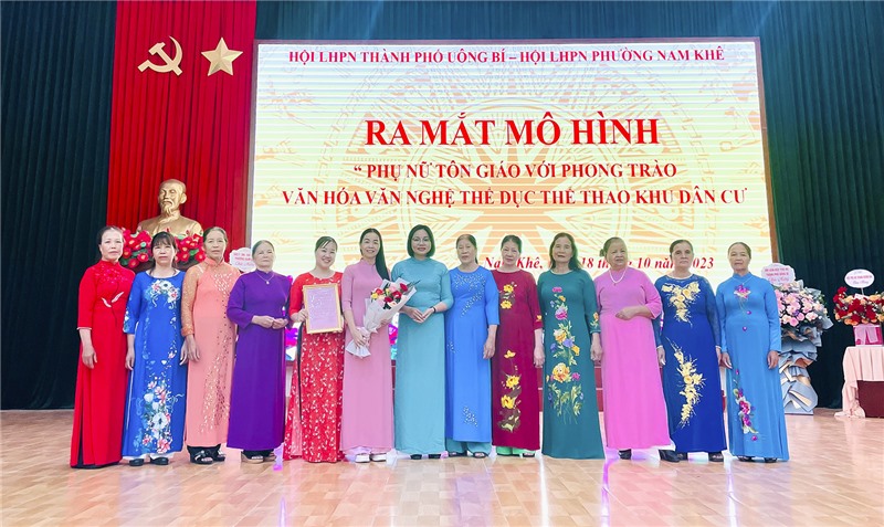 Cũng trong chương trình, Hội LHPN phường Nam Khê đã ra mắt mô hình “Phụ nữ tôn giáo với phong trào thể dục thể thao, văn hóa văn nghệ khu dân cư”, gồm 18 thành viên. Theo đó, mô hình hoạt động với mục đích tập hợp, đoàn kết, tuyên truyền, vận động phụ nữ tôn giáo tích cực tham gia các hoạt động Hội, phong trào phụ nữ thi đua yêu nước, đẩy mạnh phong trào văn hóa văn nghệ, thể dục thể thao tại khu dân cư. Qua đó góp phần xây dựng nếp sống văn minh đô thị, nâng cao chất lượng đời sống cho phụ nữ tôn giáo cũng như Nhân dân trên địa bàn phường.