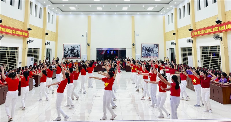 Cán bộ, hội viên phụ nữ phường Nam Khê giao lưu dân vũ sôi nổi.