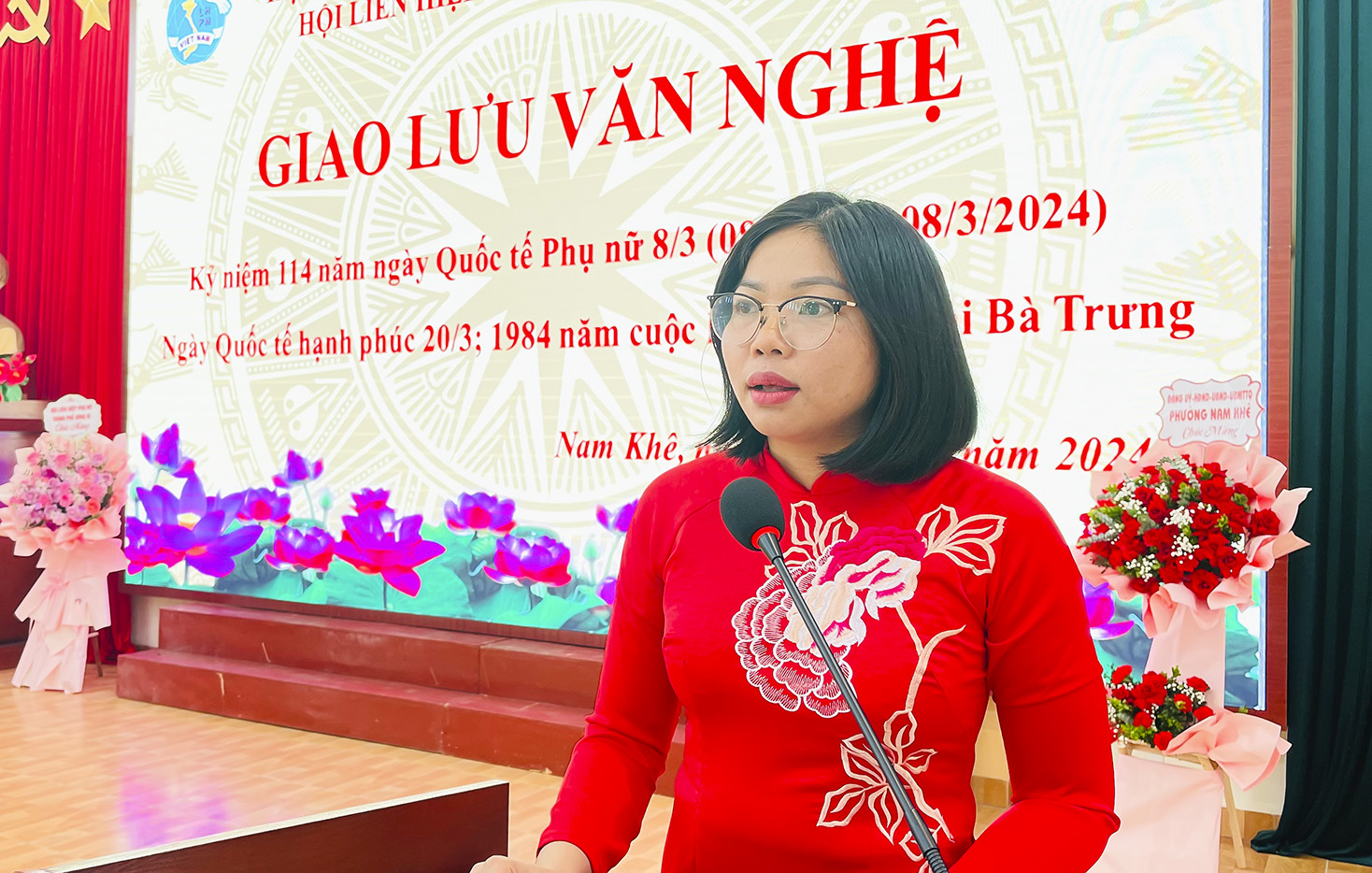 Trong chương trình, các đại biểu đã cùng nhau ôn lại truyền thống 114 năm Quốc tế phụ nữ 8/3, biểu dương những đóng góp của phụ nữ nói chung và phụ nữ phường Nam Khê nói riêng trong các lĩnh vực của đời sống xã hội.