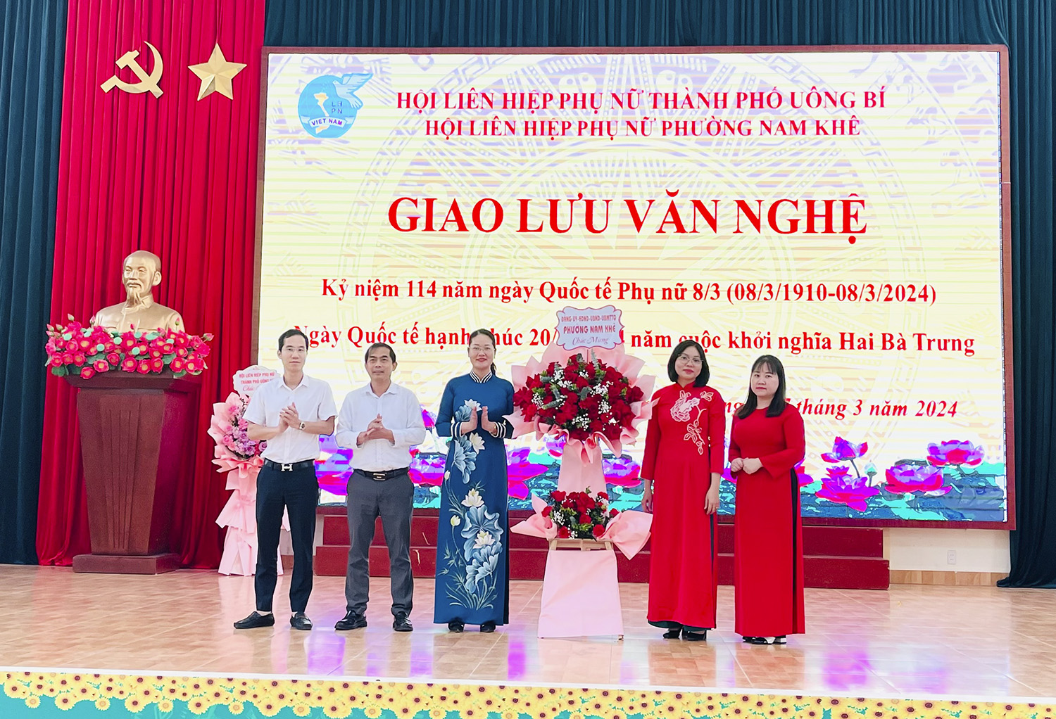 Lãnh đạo phường Nam Khê tặng hoa chúc mừng.