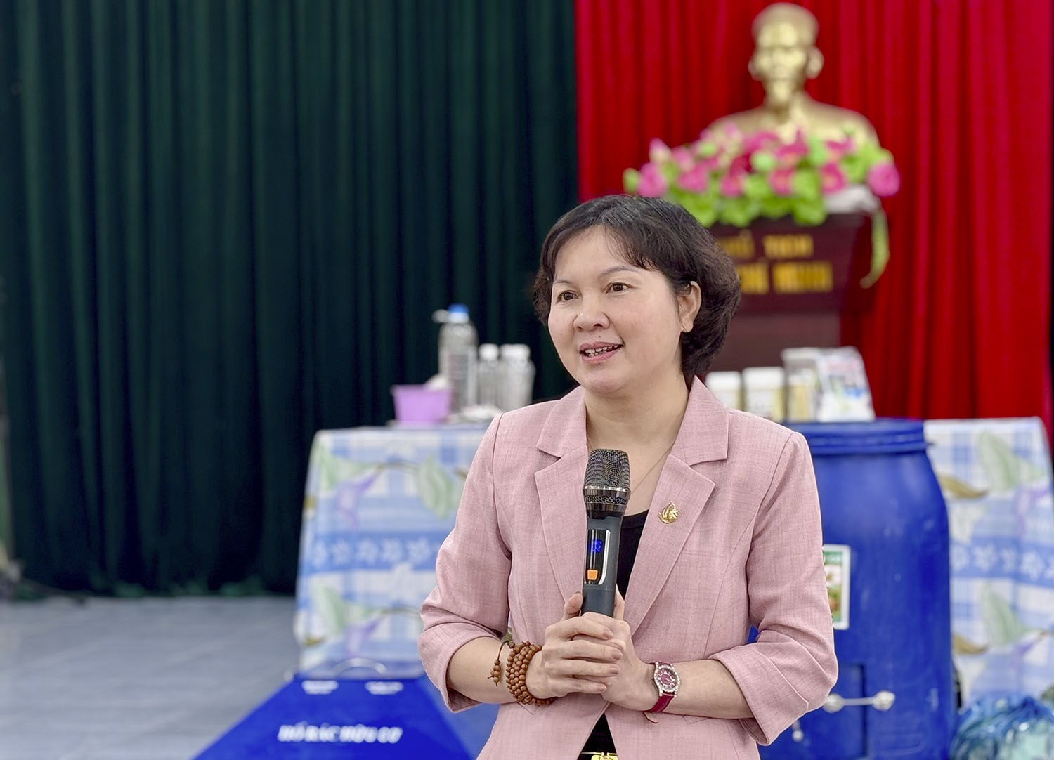 Tại buổi tập huấn, Thạc sĩ Bùi Thị Hồng Hà - Trung tâm Nông nghiệp Hữu cơ, Học viện Nông nghiệp Việt Nam - đã chia sẻ các kiến thức và hướng dẫn thực hành phân loại rác theo Luật Bảo vệ môi trường, xử lý rác hữu cơ bằng men vi sinh tại hộ gia đình. Đây là giải pháp hiệu quả giúp giảm thiểu rác thải, đồng thời tận dụng rác hữu cơ để tạo phân bón phục vụ sản xuất nông nghiệp.