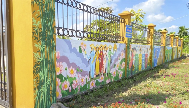 Công trình tranh vẽ tường và tuyến đường hoa mười giờ của Hội LHPN phường Phương Nam được triển khai tại nhà văn hóa khu Hiệp An 1.