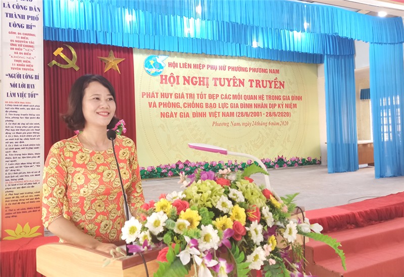 Nhân kỷ niệm ngày Gia đình Việt Nam 28-6 (2001-2020), Hội LHPN phường Phương Nam tổ chức hội nghị tuyên truyền về phát huy giá trị tốt đẹp các mối quan hệ trong gia đình và phòng chống bạo lực gia đình.