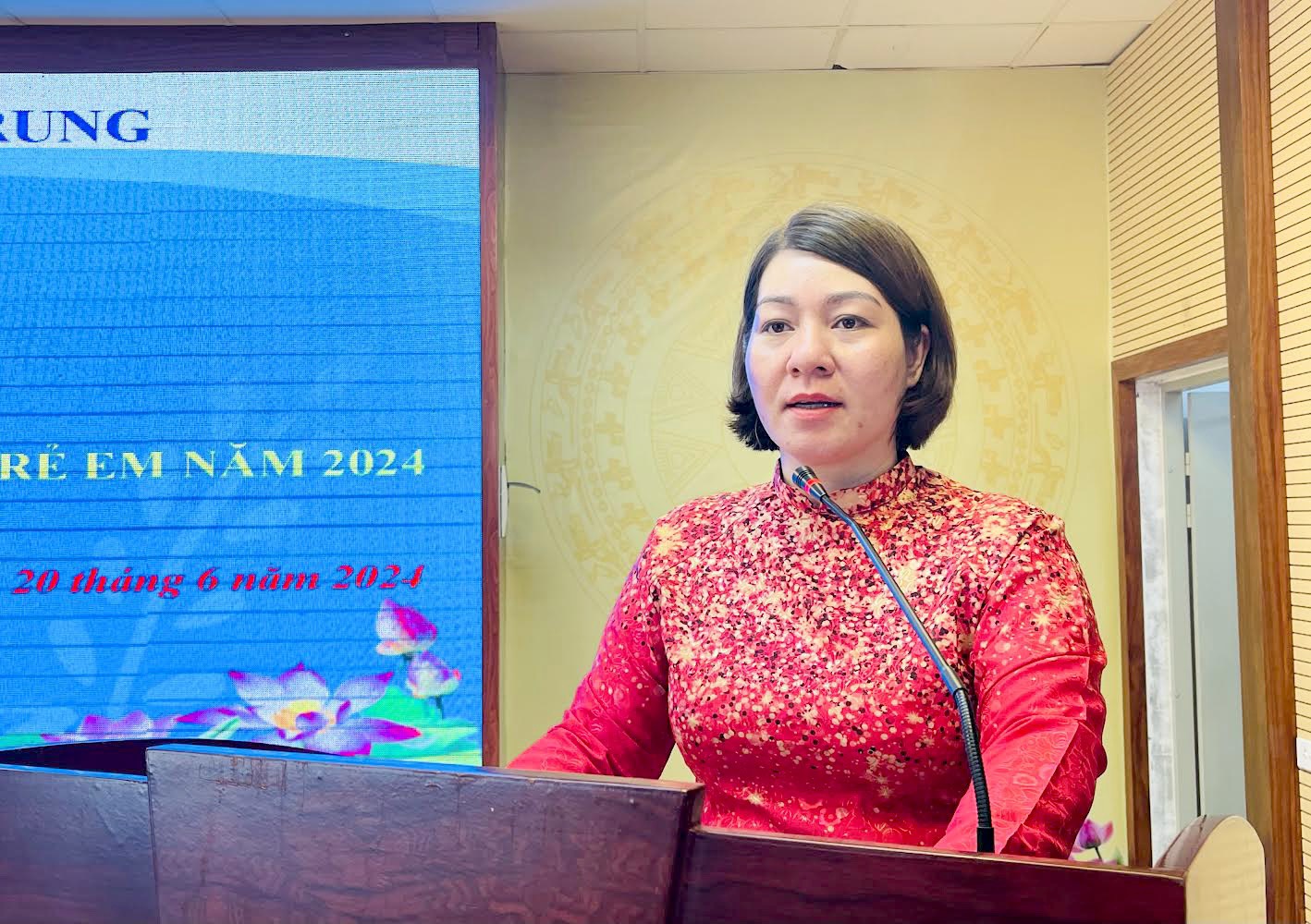 Đồng chí Đinh Mạc Phương Thúy, Chủ tịch Hội LHPN phường phát biểu tại hội nghị.