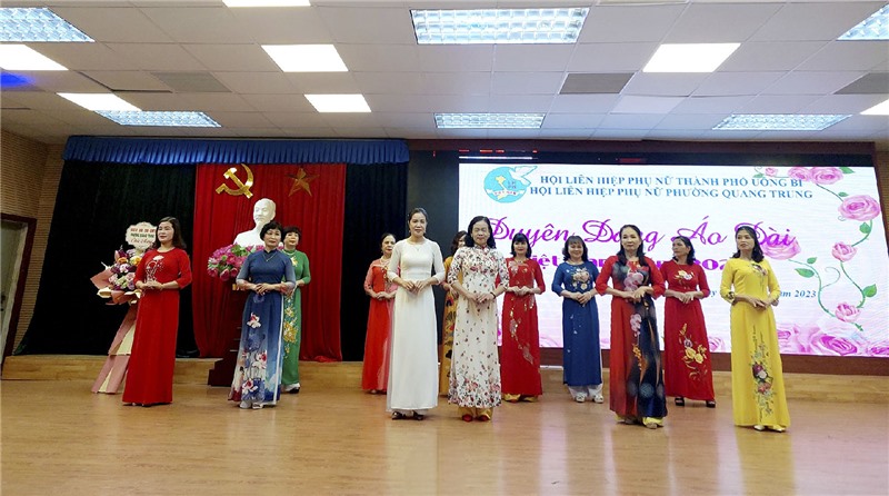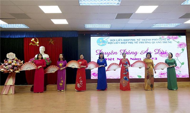 Tối ngày 3/3, Hội LHPN phường Quang Trung sôi nổi tổ chức Chương trình giao lưu trình diễn áo dài duyên dáng Việt Nam 2023 Nhân kỷ niệm 113 năm ngày Quốc tế Phụ nữ, 1983 năm Khởi nghĩa Hai Bà Trưng và hưởng ứng Tuần lễ áo dài do Trung ương Hội LHPN Việt Nam phát động. Tới dự có đồng chí Lê Thị Như Quỳnh, Chủ tịch Hội LHPN thành phố Uông Bí.