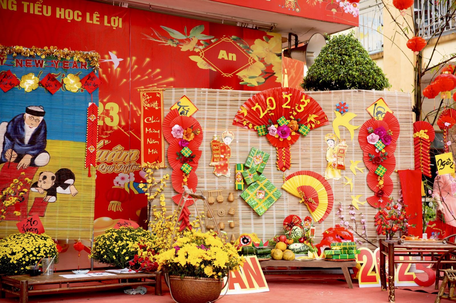 Không gian trang trí ngập tràn sắc Xuân và hương vị ngày Tết trong khuôn viên nhà trường.