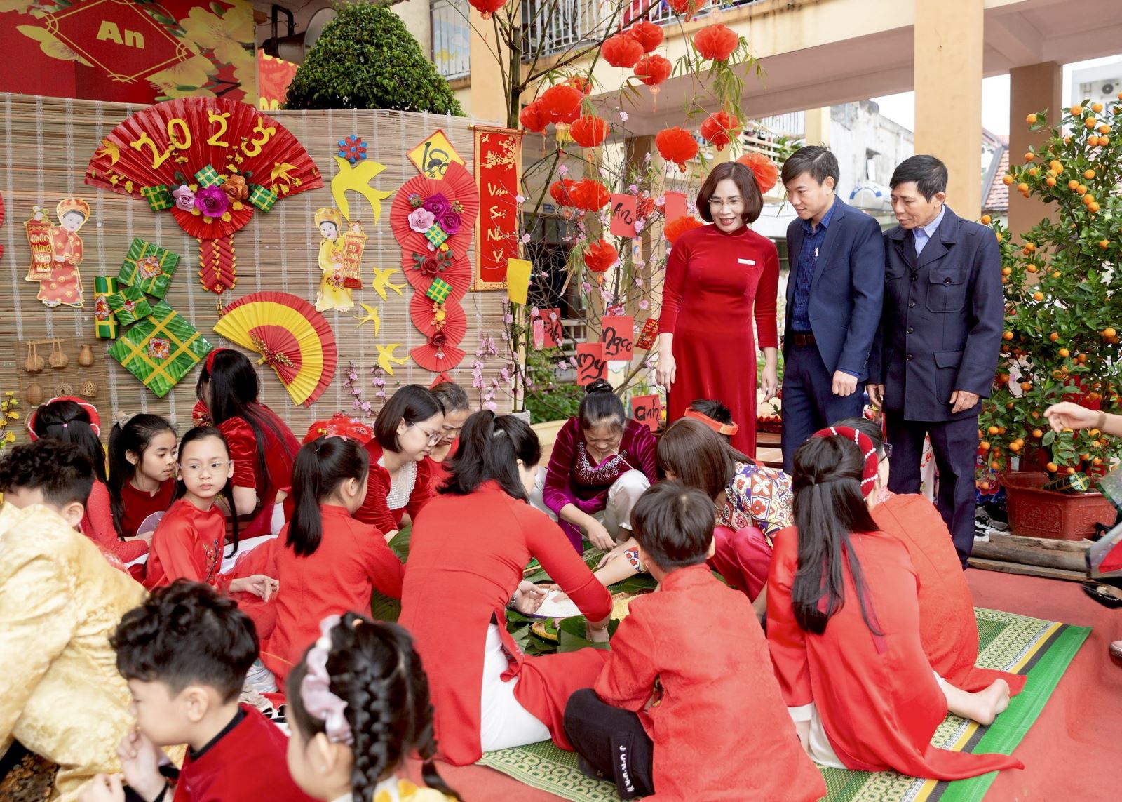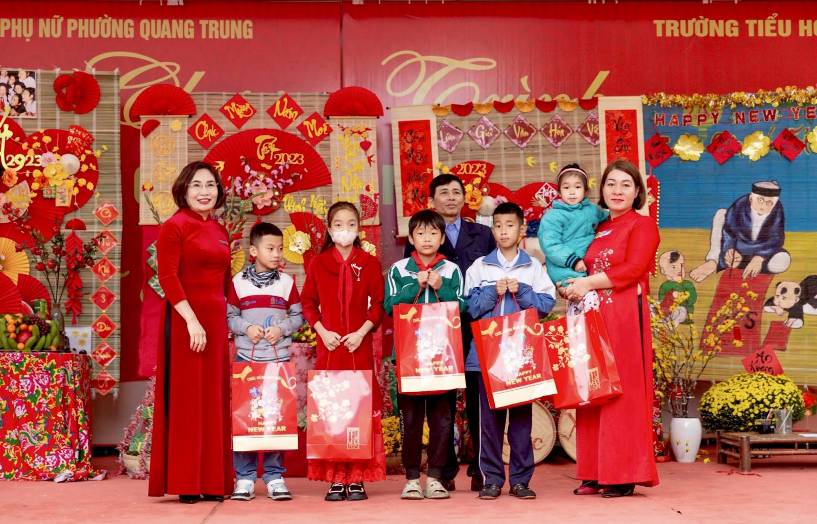 Chương trình kết thúc, các sản phẩm được nhà trường và Hội LHPN phường trao tặng cho các em học sinh có hoàn cảnh khó khăn. Món quà tuy đơn sơ nhưng là cả tấm lòng của thầy và trò nhà trường gửi đến những học sinh có hoàn cảnh khó khăn, để sẻ chia chút hương sắc ngày Xuân cũng như sự đầm ấm, gần gũi và thân thuộc trong những ngày Tết Nguyên đán truyền thống của dân tộc.