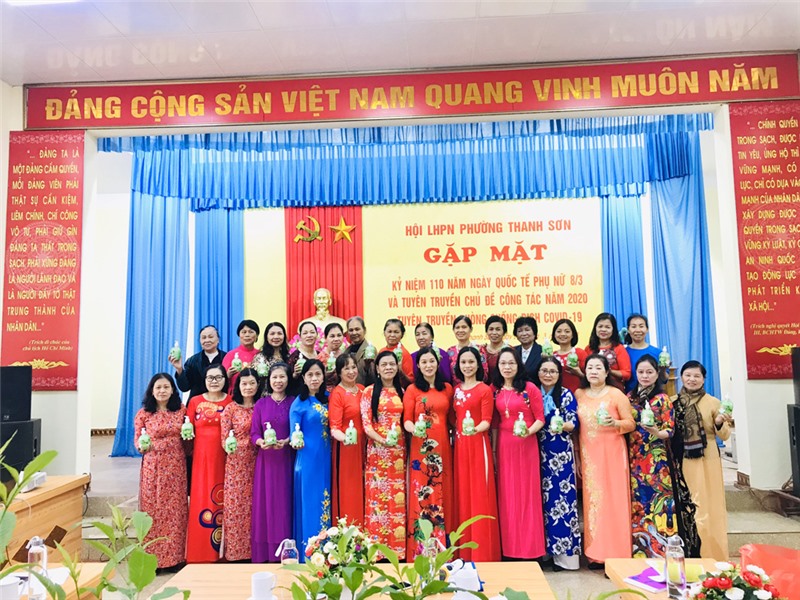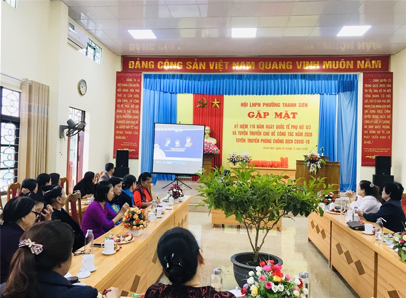 Ngày 6-3, Hội LHPN phường Thanh Sơn tổ chức Gặp mặt kỷ niệm 110 năm Ngày Quốc tế phụ nữ 8-3, tuyên truyền chủ đề công tác năm 2020 và phòng chống dịch Covid-19 cho hội viên Hội phụ nữ phường.