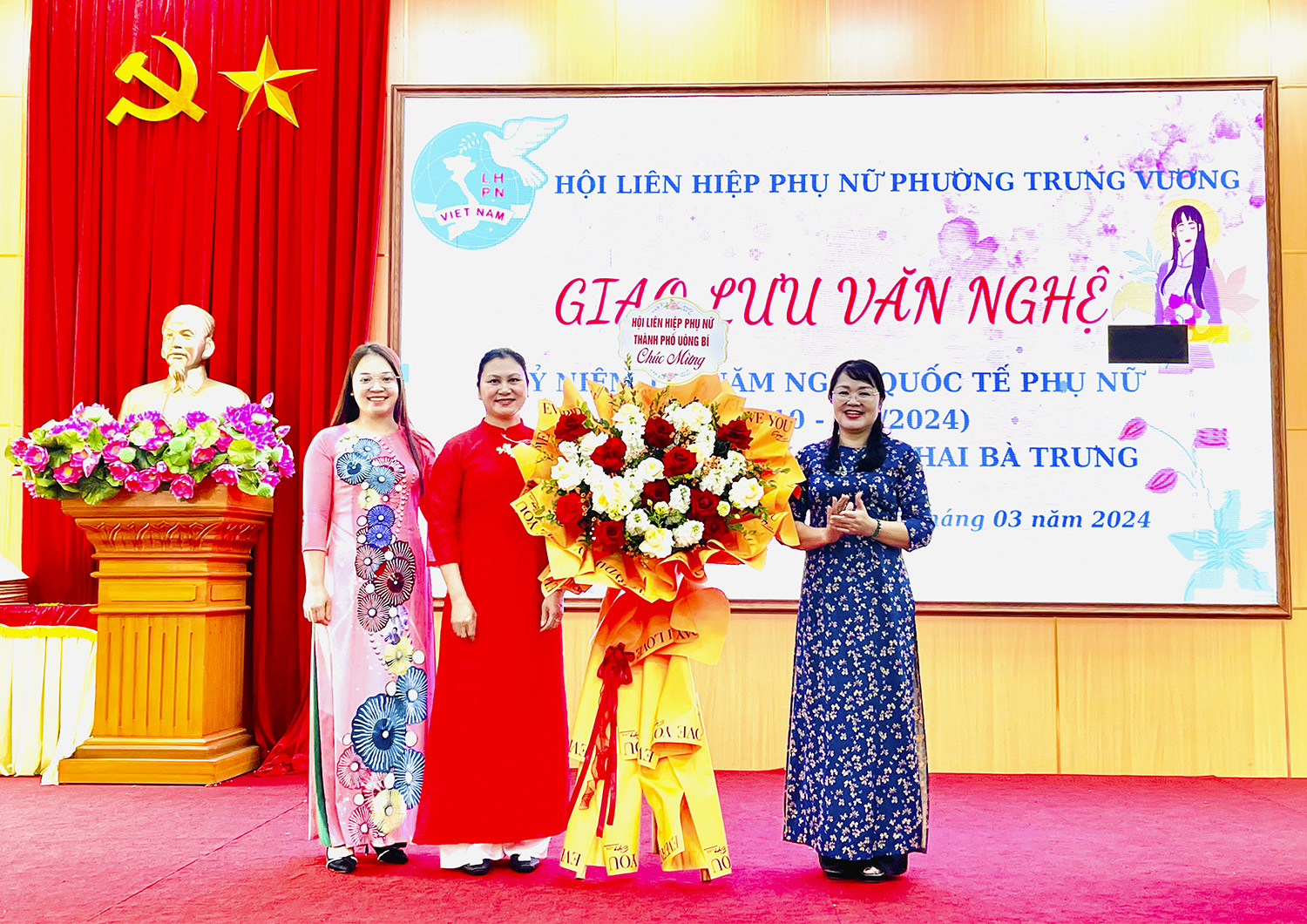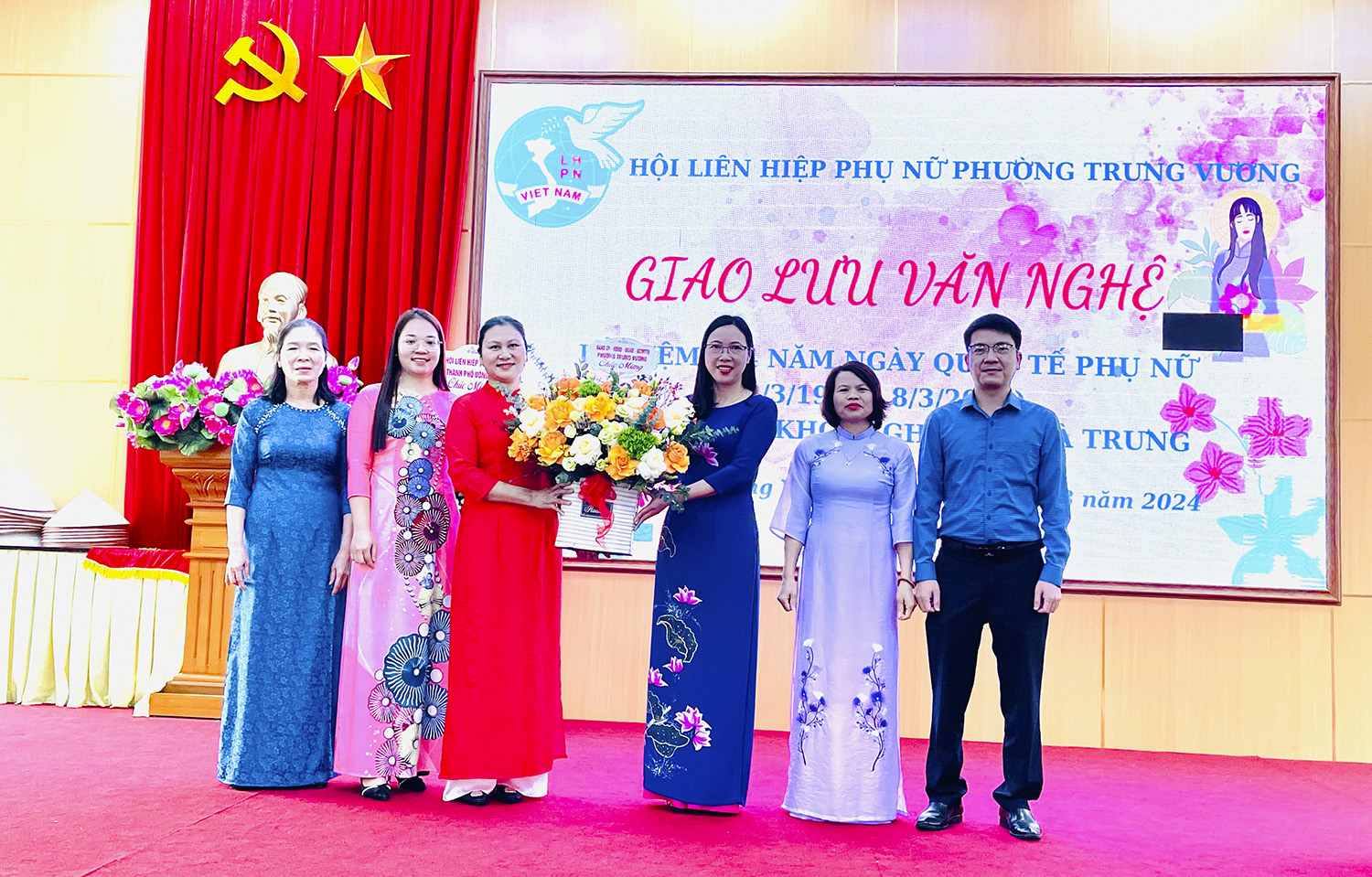 Ngày 5/3, Hội LHPN phường Trưng Vương tổ chức Chương trình gặp mặt kỷ niệm 114 năm Ngày Quốc tế phụ nữ 8/3/1910 – 8/3/2024 và 1984 năm Khởi nghĩa Hai Bà Trưng, giao lưu văn nghệ năm 2024, hưởng ứng tuần lễ áo dài và tôn vinh vẻ đẹp của người phụ nữ Việt Nam trong thời kỳ mới - hội nhập và phát triển. Dự chương trình có đồng chí Nguyễn Lan Anh - Ủy viên Ban thường vụ Thành ủy, Bí thư Đảng ủy, Chủ tịch HĐND phường; đồng chí Vũ Thị Minh Thuỳ - Phó Chủ tịch Hội LHPN thành phố.
