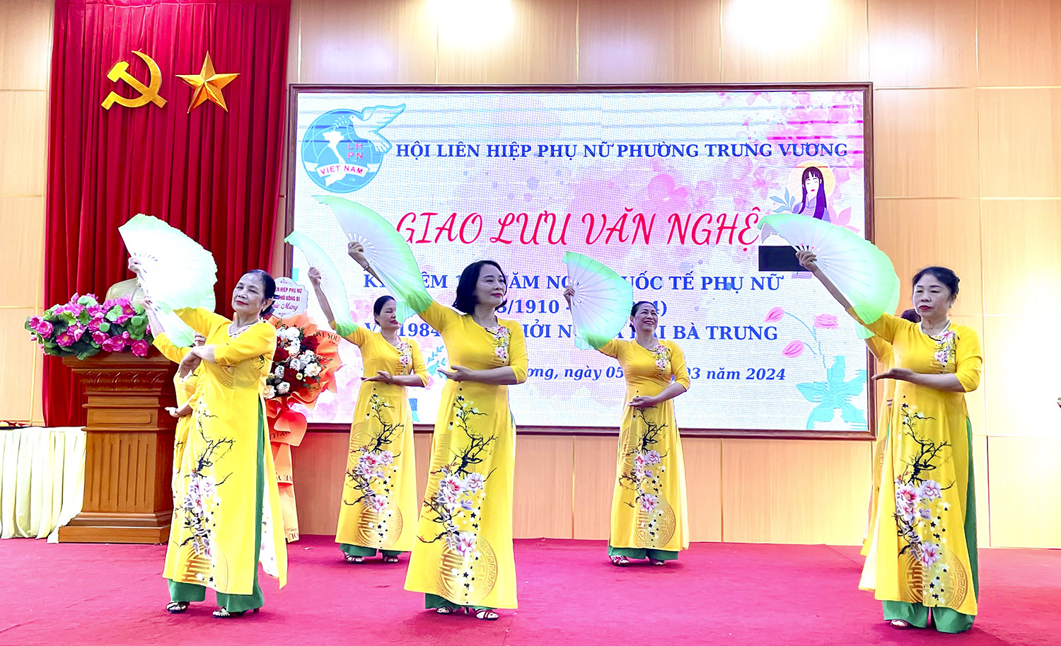 Tại chương trình, các đại biểu đã cùng nhau ôn lại lịch sử 114 năm Ngày Quốc tế Phụ nữ và 1984 năm cuộc Khởi nghĩa Hai Bà Trưng. Tiếp nối truyền thống vẻ vang đó, cán bộ, hội viên, phụ nữ phường Trưng Vương đã không ngừng học tập, rèn luyện nâng cao trình độ, tích cực tham gia các hoạt động trên các lĩnh vực kinh tế, văn hóa - xã hội, an ninh - quốc phòng; đoàn kết, chung sức đồng lòng xây dựng phát triển các mô hình, phong trào của Hội thông qua các hoạt động văn hóa, văn nghệ, thể dục thể thao để nâng cao sức khỏe và tạo ra sân chơi lành mạnh, bổ ích thiết thực cho cán bộ hội viên và Nhân dân.