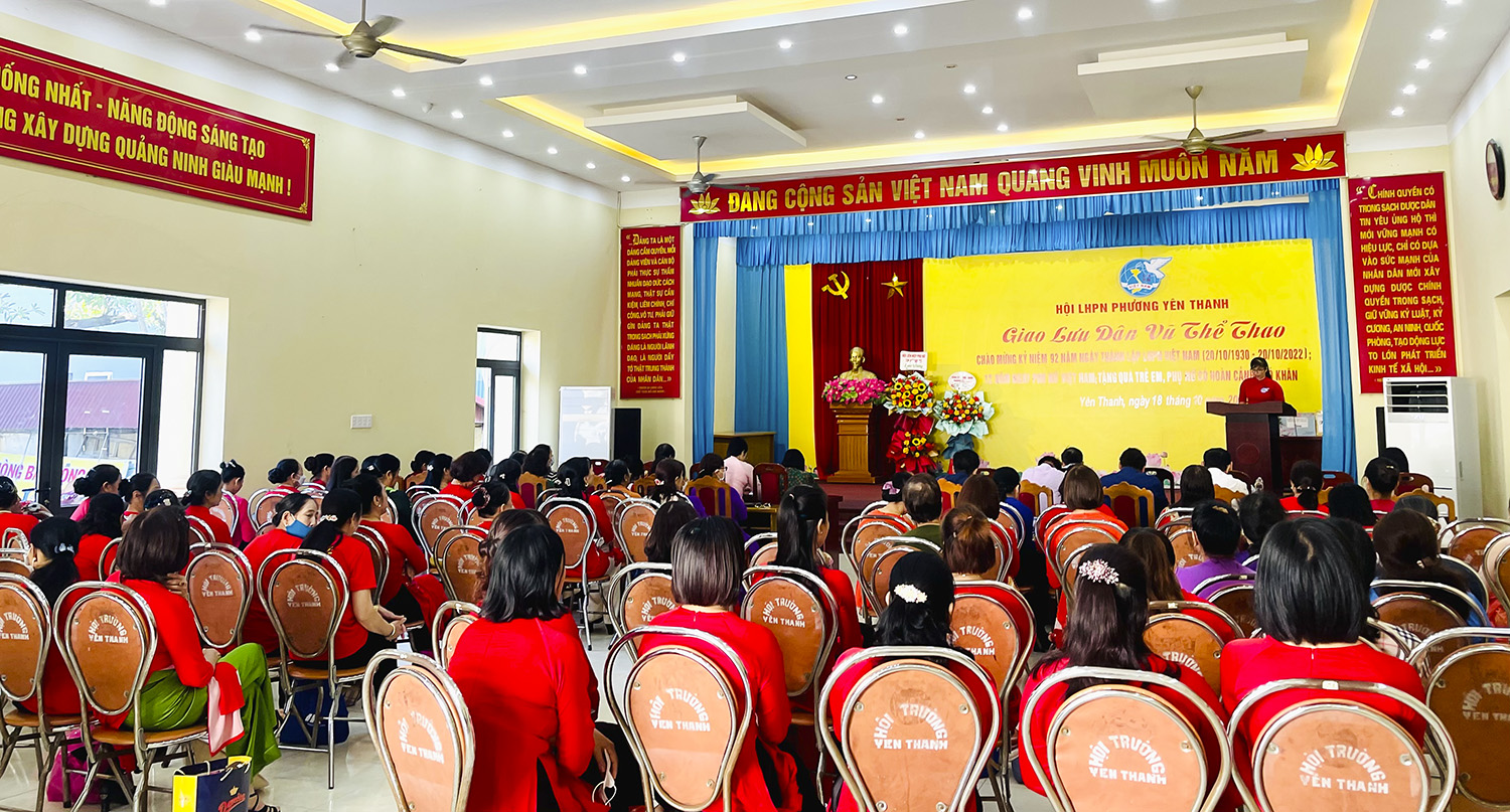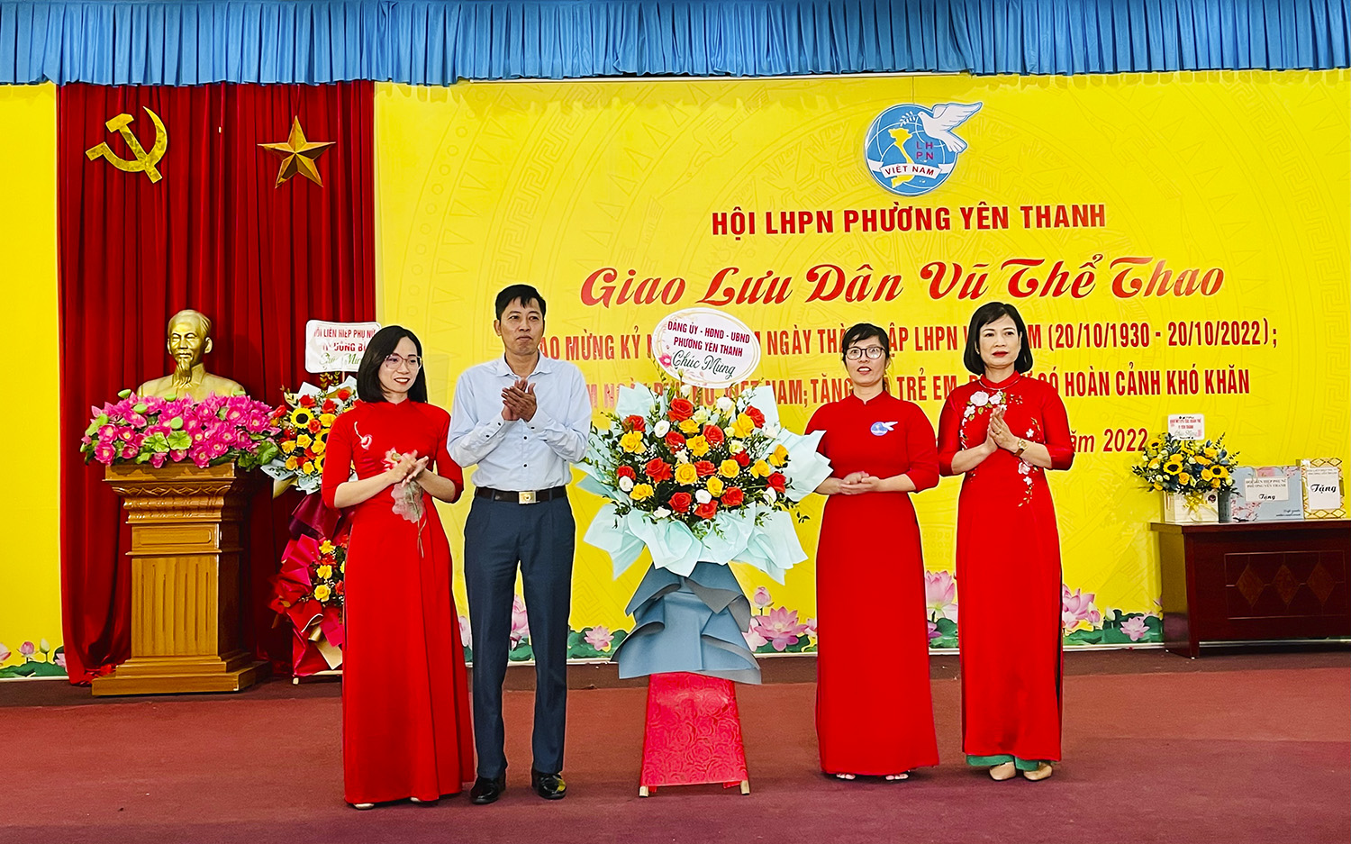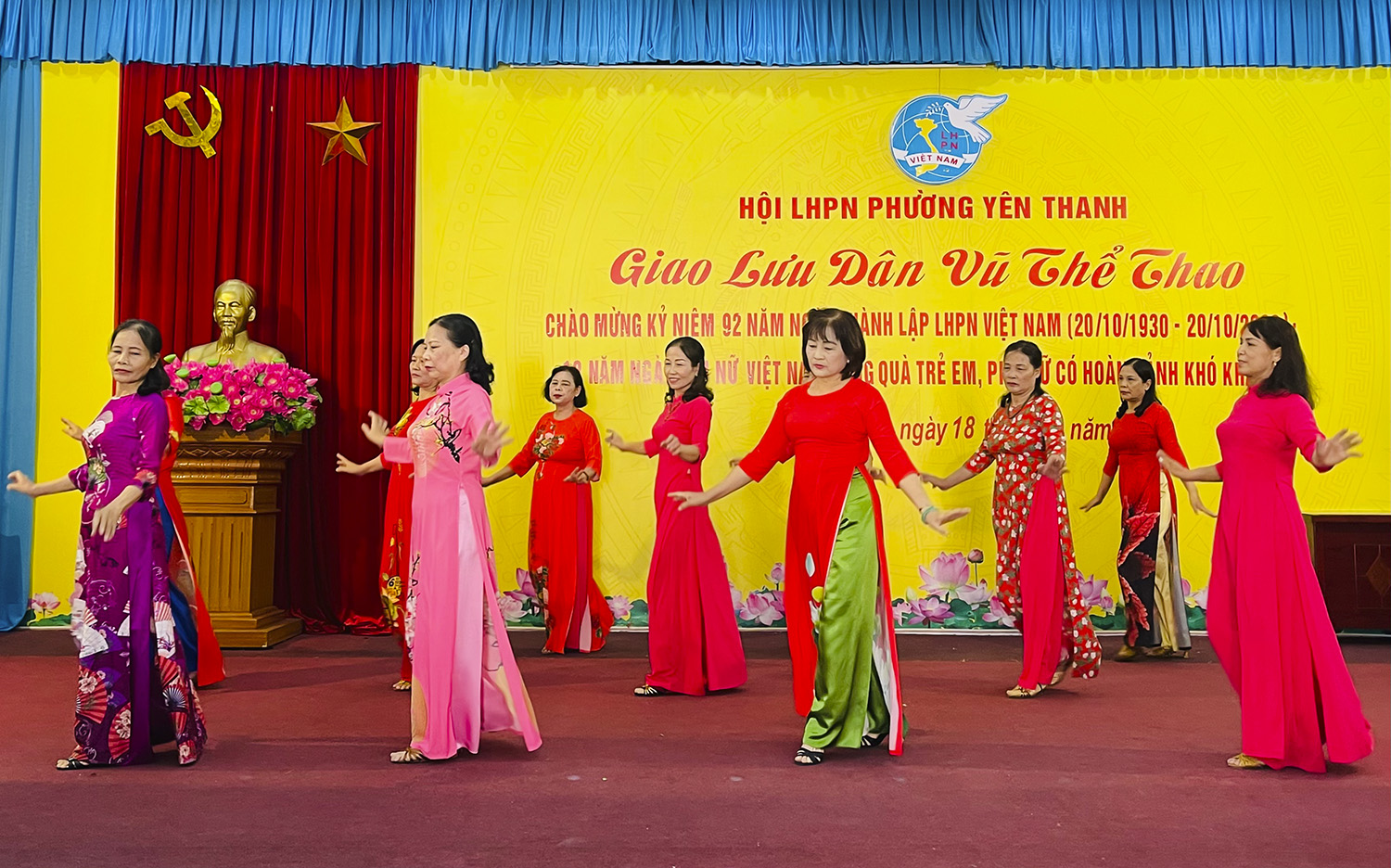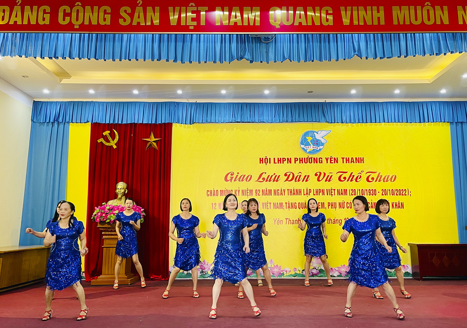 Ngày 18/10, Hội LHPN phường Yên Thanh tổ chức gặp mặt, giao lưu dân vũ thể thao chào mừng kỷ niệm 92 năm Ngày thành lập Hội LHPN Việt Nam, 12 năm Ngày phụ nữ Việt Nam 20-10. Dự chương trình có lãnh đạo Hội LHPN thành phố, lãnh đạo Đảng ủy, HĐND, UBND, MTTQ, các đoàn thể phường; cán bộ, hội viên chi hội phụ nữ các khu dân cư trên địa bàn.