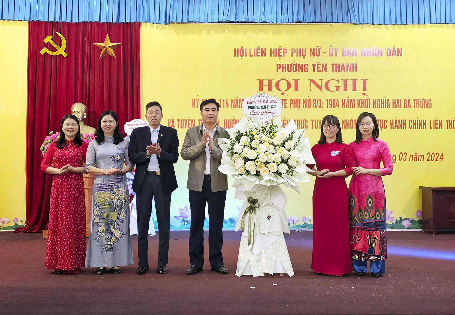 Sáng 7/3, Hội LHPN phường Yên Thanh sôi nổi tổ chức Kỷ niệm 114 năm ngày quốc tế phụ nữ 8/3, 1984 năm khởi nghĩa Hai Bà Trưng và tuyên truyền, hướng dẫn thực hiện trực tuyến 2 nhóm thủ tục hành chính liên thông. Tới dự có các đồng chí lãnh đạo Hội LHPN thành phố, phòng Nội vụ thành phố; Đảng ủy, HĐND, UBND, Uỷ ban MTTQ phường và đông đảo hội viên phụ nữ trên địa bàn.