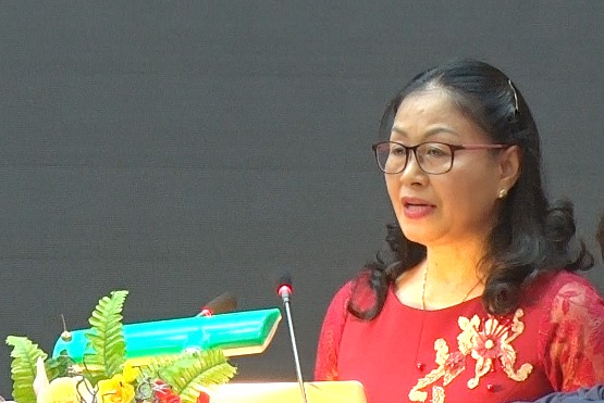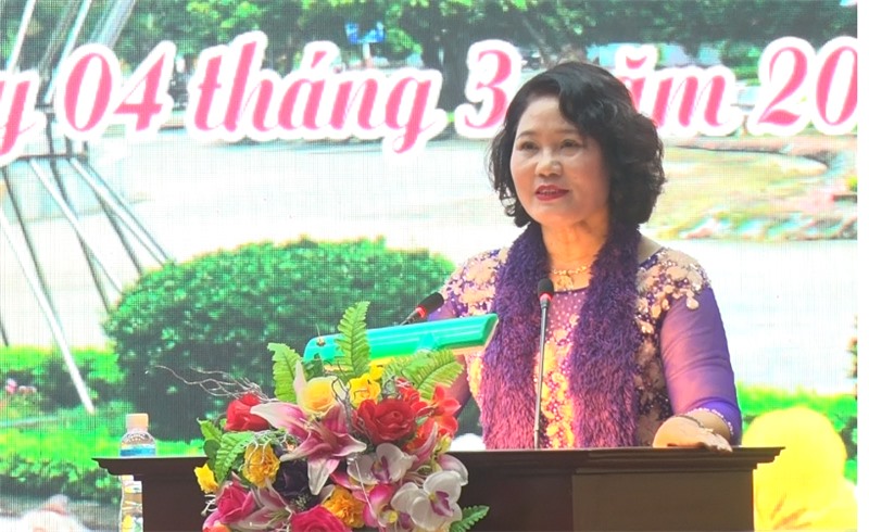 Đồng chí Phạm Thị Nga, Chủ tịch Hội LHPN thành phố phát biểu tại buổi gặp mặt.