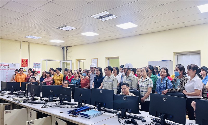 Cán bộ, hội viên Hội LHPN thành phố tham quan Phòng Điều khiển trung tâm, vườn rau sạch và mô hình Vracbank tại Công ty CP Xi măng và Xây dựng Quảng Ninh.