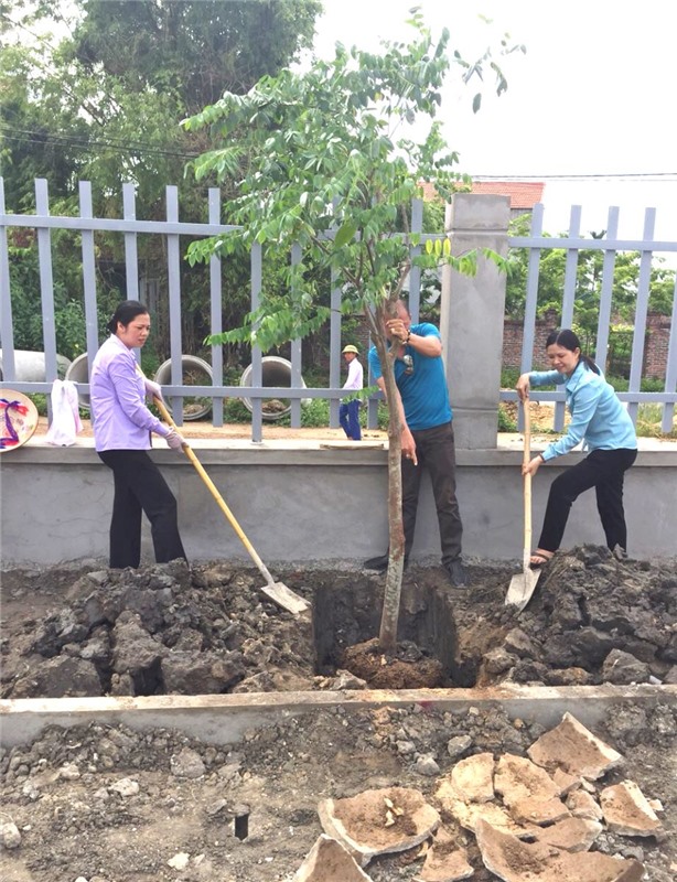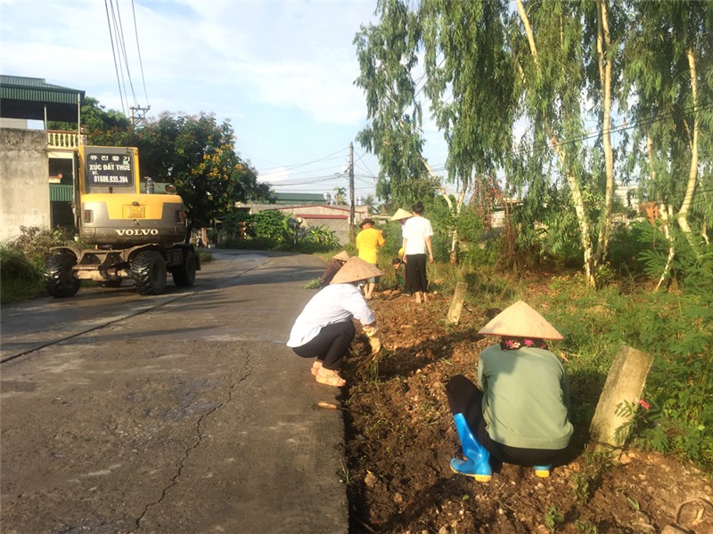 Cán bộ, hội viên Hội phụ nữ trồng các loại hoa, cây xanh tạo cảnh quan, bóng mát trên các tuyến đường, khu dân cư.