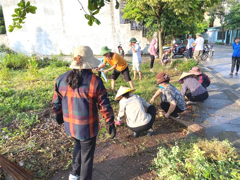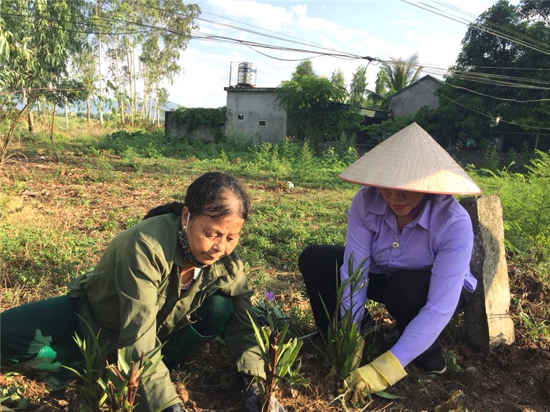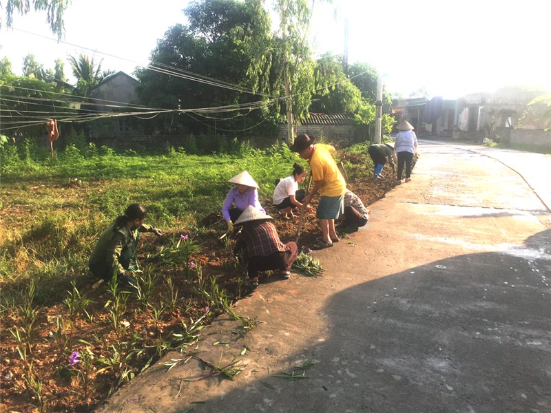 Các chi tổ huy động hội viên nhổ cỏ, cắt tỉa chăm sóc các tuyến đường hoa, dọn vệ sinh môi trường.