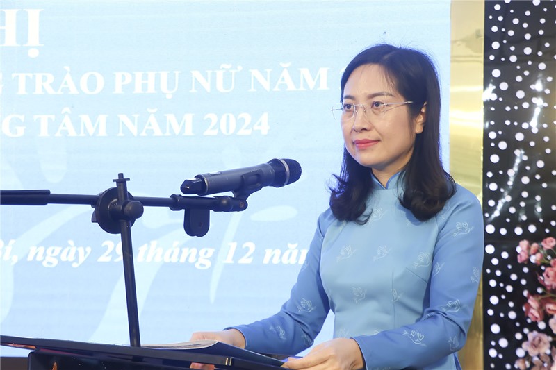 Đồng chí Nguyễn Vũ Thu Hoà - Chủ tịch Hội LHPN Tỉnh phát biểu tại hội nghị.