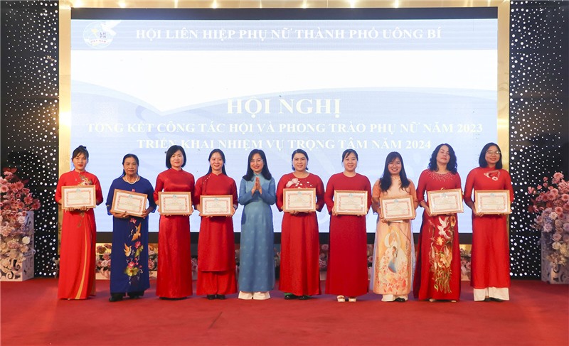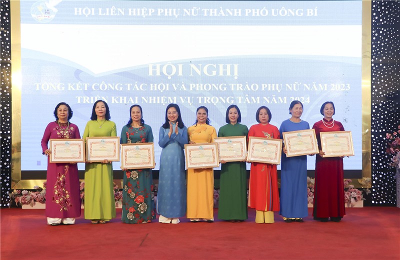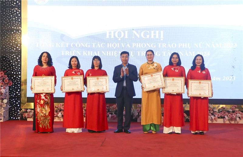 Các tổ chức cơ sở hội và các hội viên có thành tích xuất sắc trong công tác Hội và phong trào Phụ nữ năm 2023 được khen thưởng.