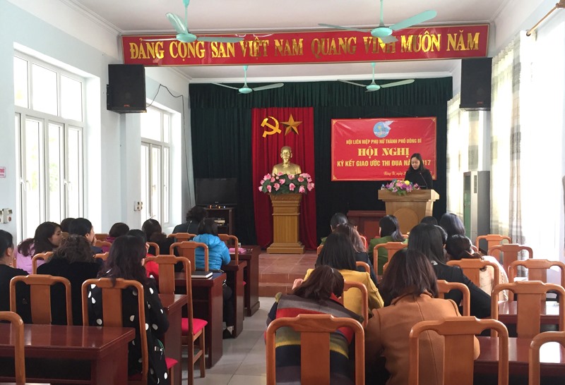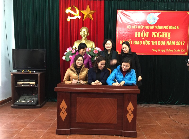 Tại hội nghị, Hội LHPN đã tổ chức ký kết giao ước thi đua năm 2017 với các nhóm chỉ tiêu nhiệm vụ trọng tâm như: phấn đấu trên 80% cán bộ hội viên đạt 3 tiêu chuẩn của phong trào thi đua “phụ nữ tích cực học tập, lao động sáng tạo, xây dựng gia đình hạnh phúc” gắn với cuộc vận động “xây dựng gia đình 5 không 3 sạch, 70% xã phường đảm bảo tiêu chí “3 sạch”; 82% các bà mẹ có con dưới 16 tuổi được trang bị kiến thức kỹ năng nuôi dạy con tốt; phấn đấu 100% chi tổ có hoạt động tiết kiệm.