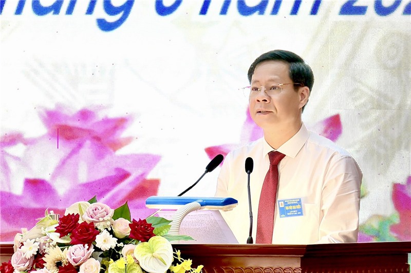 Đồng chí Phạm Tuấn Đạt - PBT Thành ủy, Chủ tịch UBND Thành phố phát biểu tại Đại hội.