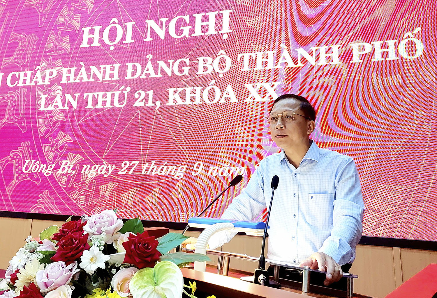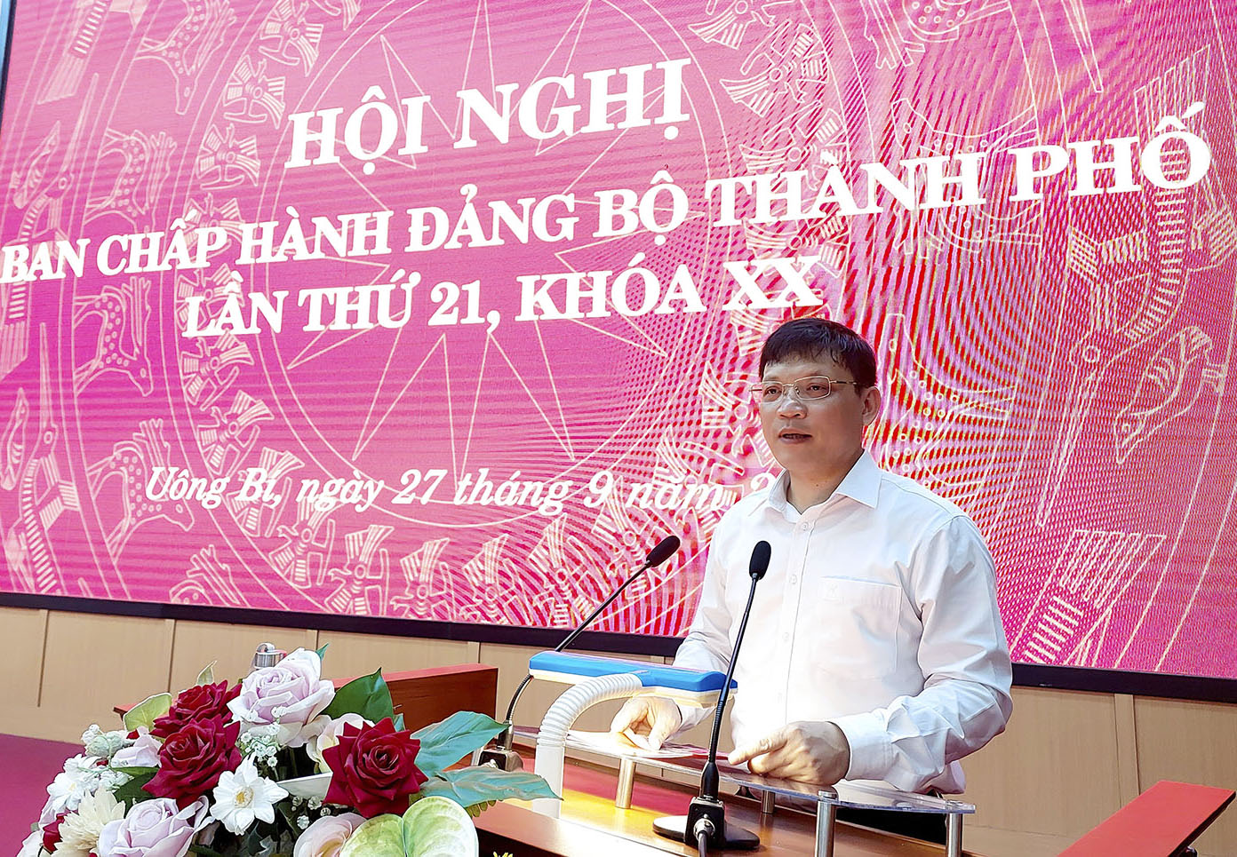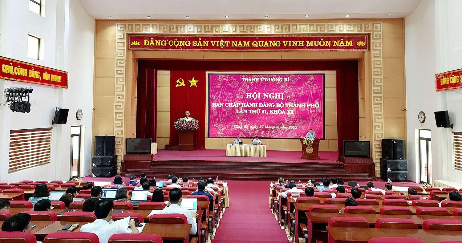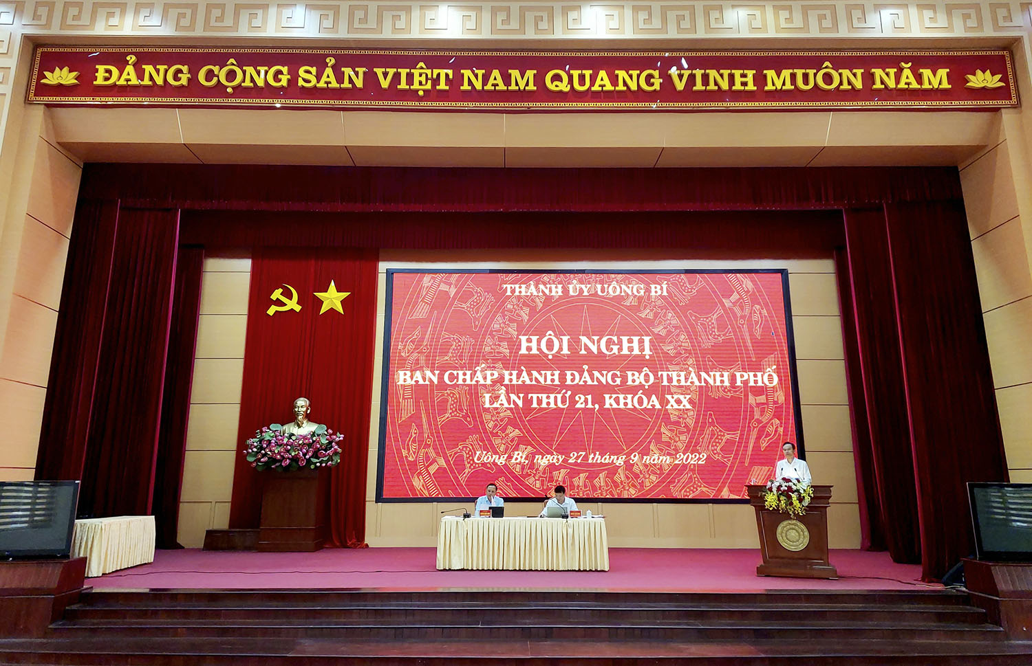 Sáng ngày 27/9, Ban Chấp hành Đảng bộ thành phố Uông Bí tổ chức Hội nghị lần thứ 21 mở rộng để đánh giá kết quả thực hiện nhiệm vụ 9 tháng, triển khai phương hướng, nhiệm vụ quý IV năm 2022; báo cáo những công việc Ban Thường vụ Thành ủy đã giải quyết giữa hai kỳ hội nghị Ban Chấp hành Đảng bộ thành phố. Các đồng chí: Nghiêm Xuân Cường, Tỉnh ủy viên, Bí thư Thành ủy, Chủ tịch HĐND thành phố; Nguyễn Chiến Thắng, Phó Bí thư Thường trực Thành ủy chủ trì hội nghị.