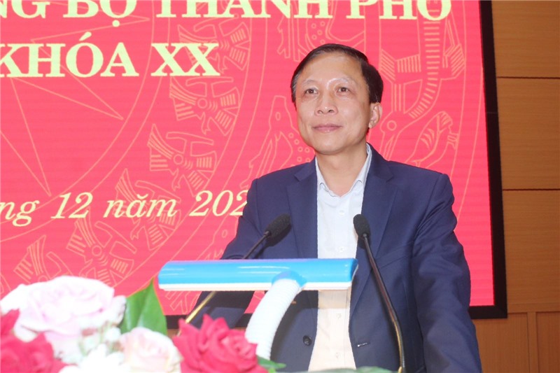 Đồng chí Nghiêm Xuân Cường, Tỉnh ủy viên, Bí thư Thành ủy, Chủ tịch HĐND thành phố phát biểu kết luận.