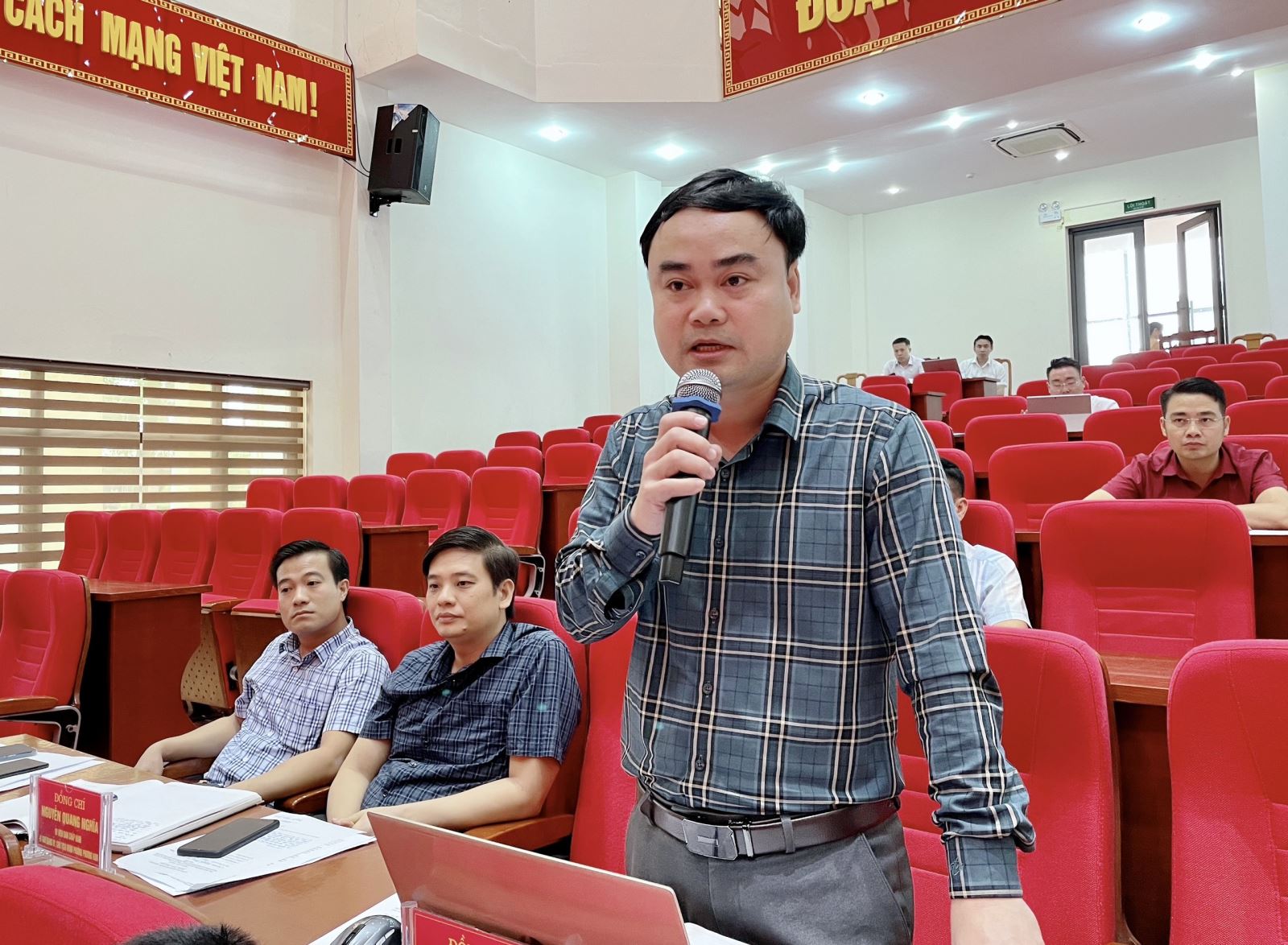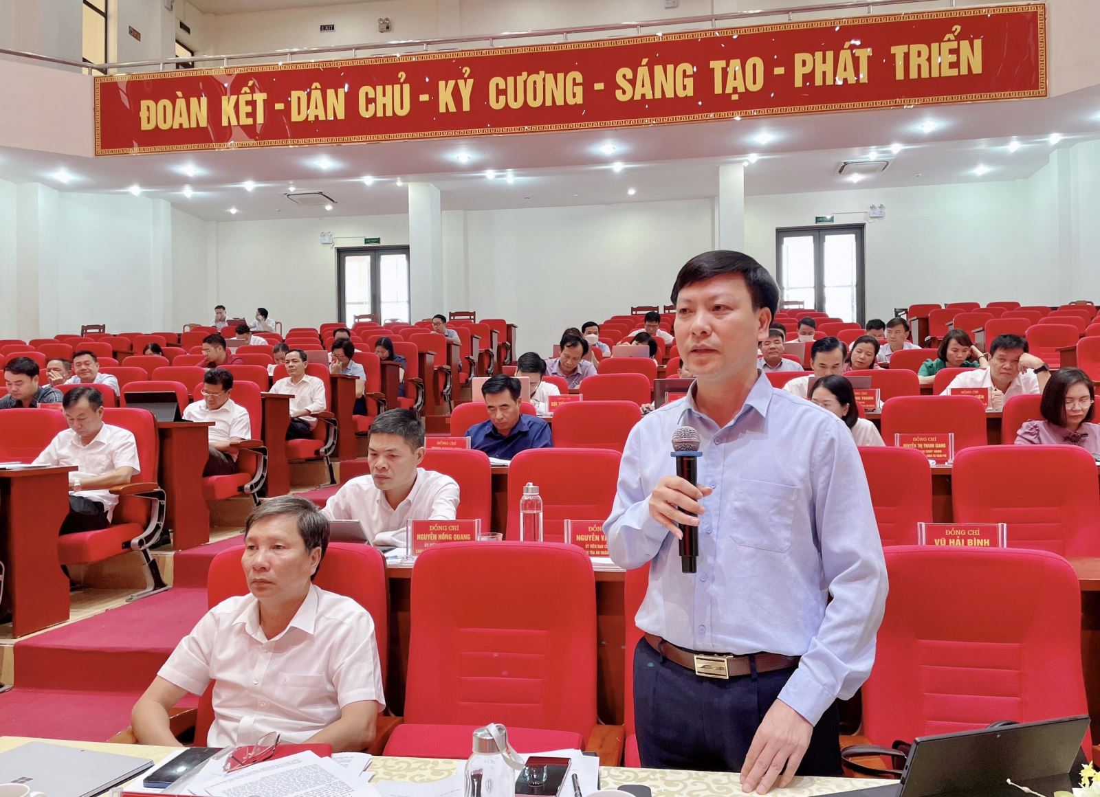 Đồng chí Nghiêm Xuân Cường, Tỉnh uỷ viên, Bí thư Thành uỷ, Chủ tịch HĐND thành phố phát biểu tại hội nghị.