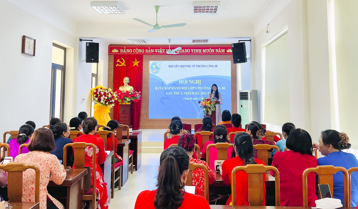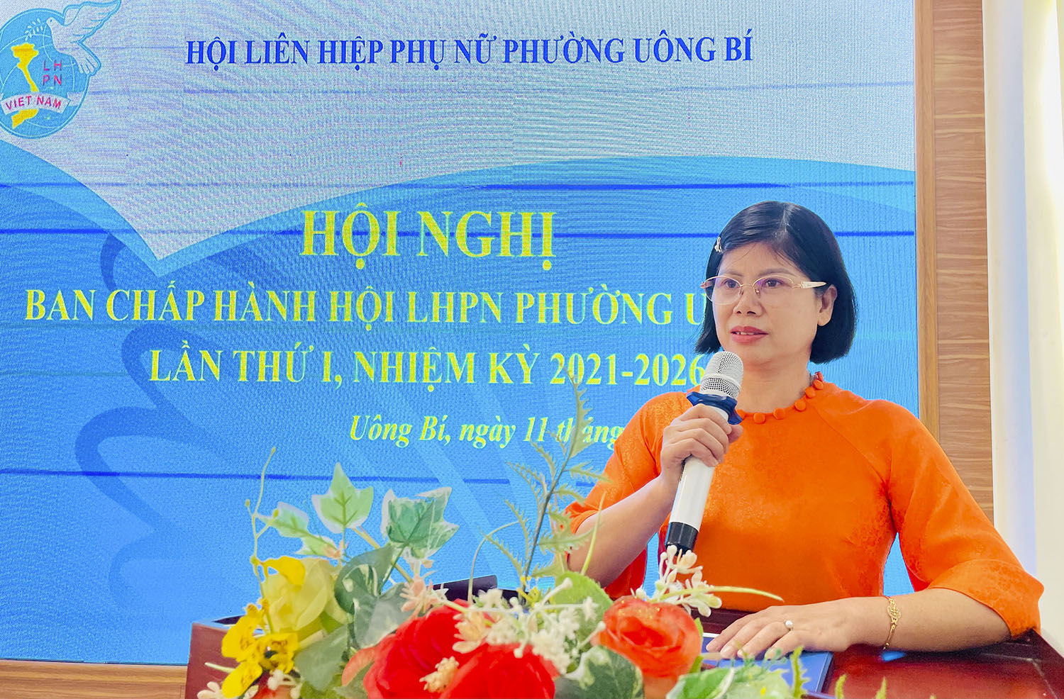 Hội nghị đã công bố và trao các quyết định thành lập Hội LHPN phường Uông Bí; Quyết định chỉ định Ban Chấp hành, Ban Thường vụ, các chức danh Chủ tịch, Phó Chủ tịch Hội nhiệm kỳ 2021-2026. Theo đó, đồng chí Nguyễn Thị Mai Hạnh giữ chức Chủ tịch Hội LHPN phường; các đồng chí Nguyễn Thị Diễm Hương và Nguyễn Thị Dung giữ chức Phó Chủ tịch Hội.