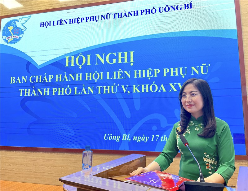 Đồng chí Lê Thị Như Quỳnh, Chủ tịch Hội LHPN TP Uông Bí triển khai chương trình công tác trọng tâm năm 2023.